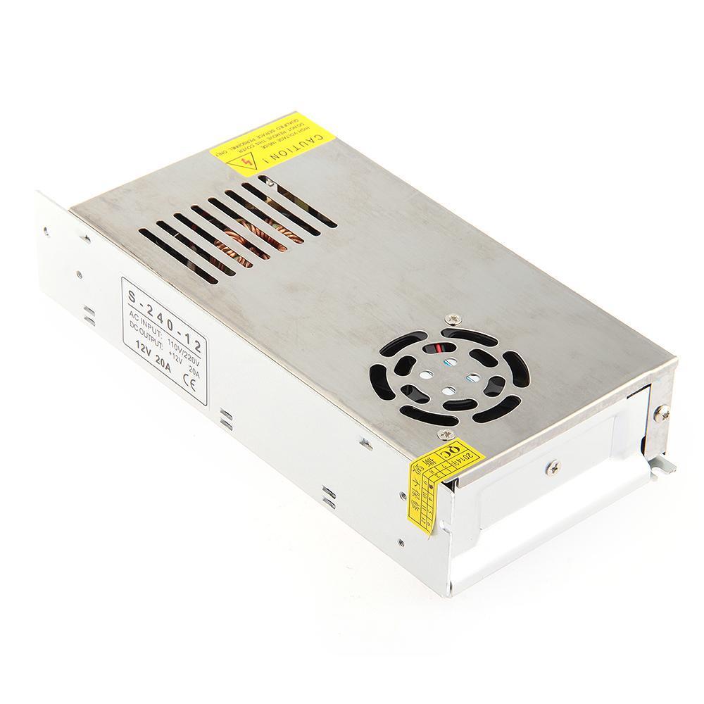 Ventilated Metal Casing 20A 12V 240W AC to DC Transformers, Regulated Switching Power Supplies Universal Adapter.