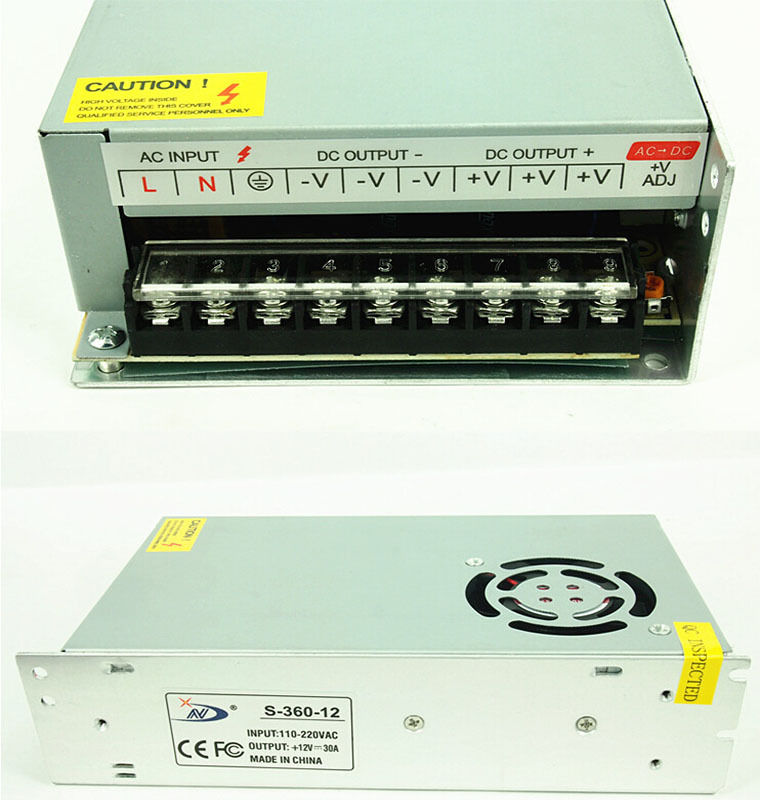 Ventilated Metal Casing 30A 12V 360W AC to DC Transformers, Regulated Switching Power Supplies Universal Adapter.