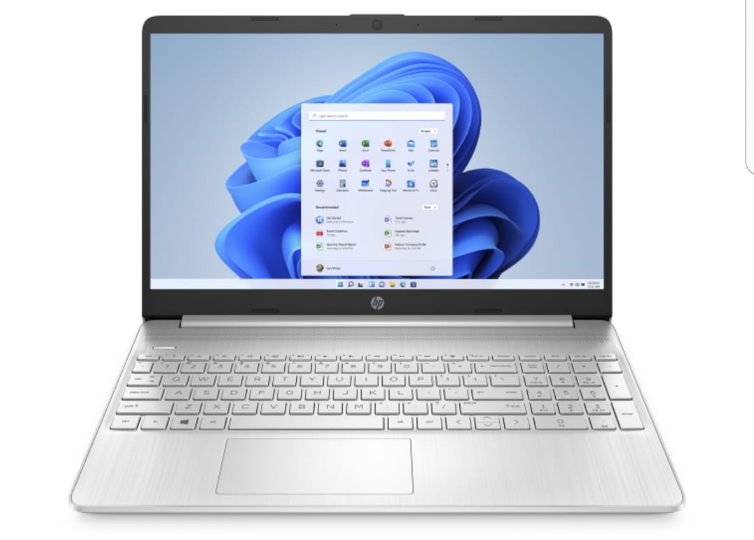 HP 15s AMD Ryzen 5 5500U 8GB RAM 256GB SSD Storage Silver Laptop with Windows 11, 15,6-Inch FHD display.