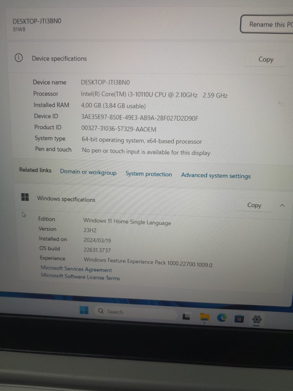LENOVO 15.6"IDEAPAD 3INTEL CORE I310TH GEN 2.10GHZ4GB464GBSSDSTILL IN GOOD PERFECT WORKING CONDITION WITH SIX MONTHS REPAIR WARRANTY