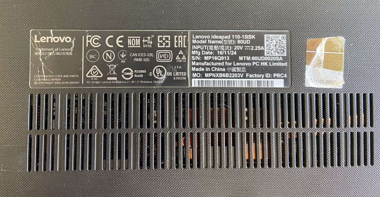 Lenovo Ideapad 110-15ISKProcessor: Intel (R) Core (TM) i5-6200U CPU @ 2.30GHz 2.40GHZRAM: 8 GBStorage: 1TB