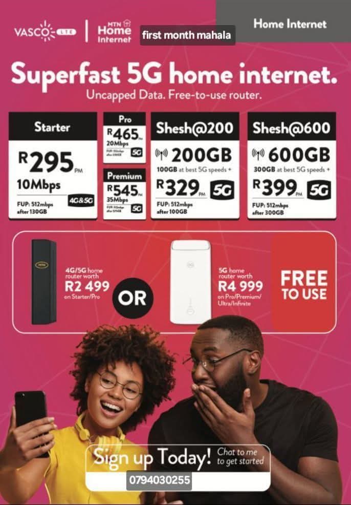 🚀 Get MTN LTE simcard and router UNLIMITED INTERNET for ONLY R295 recurring