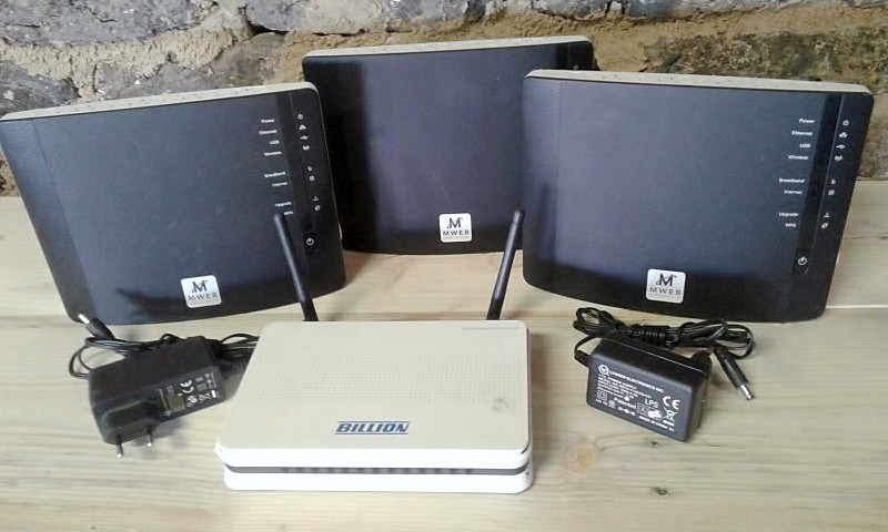 4 MWeb & Billion ADSL routers. R200 for all 4 routers. You need a Telkom line. They don’t use simcard. Only 2 power supplies. MWeb technicolour router. Model TG589vn v3 Up to 30m Wireless N (300Mbps) coverage Ability to broadcast multiple WiFi Service Set Identifiers Billion 3G / Wireless-N ADSL2+ Firewall router. You need a Telkom line for this router. Model: Bipac 7300NX. Wireless data rate 300mbps. I stay in Newlands in the Westrand JHB. Contact I am also on Whatsapp. Courier can also be arranged. Postnet courier extra R99. Pepstores Paxi extra R50.