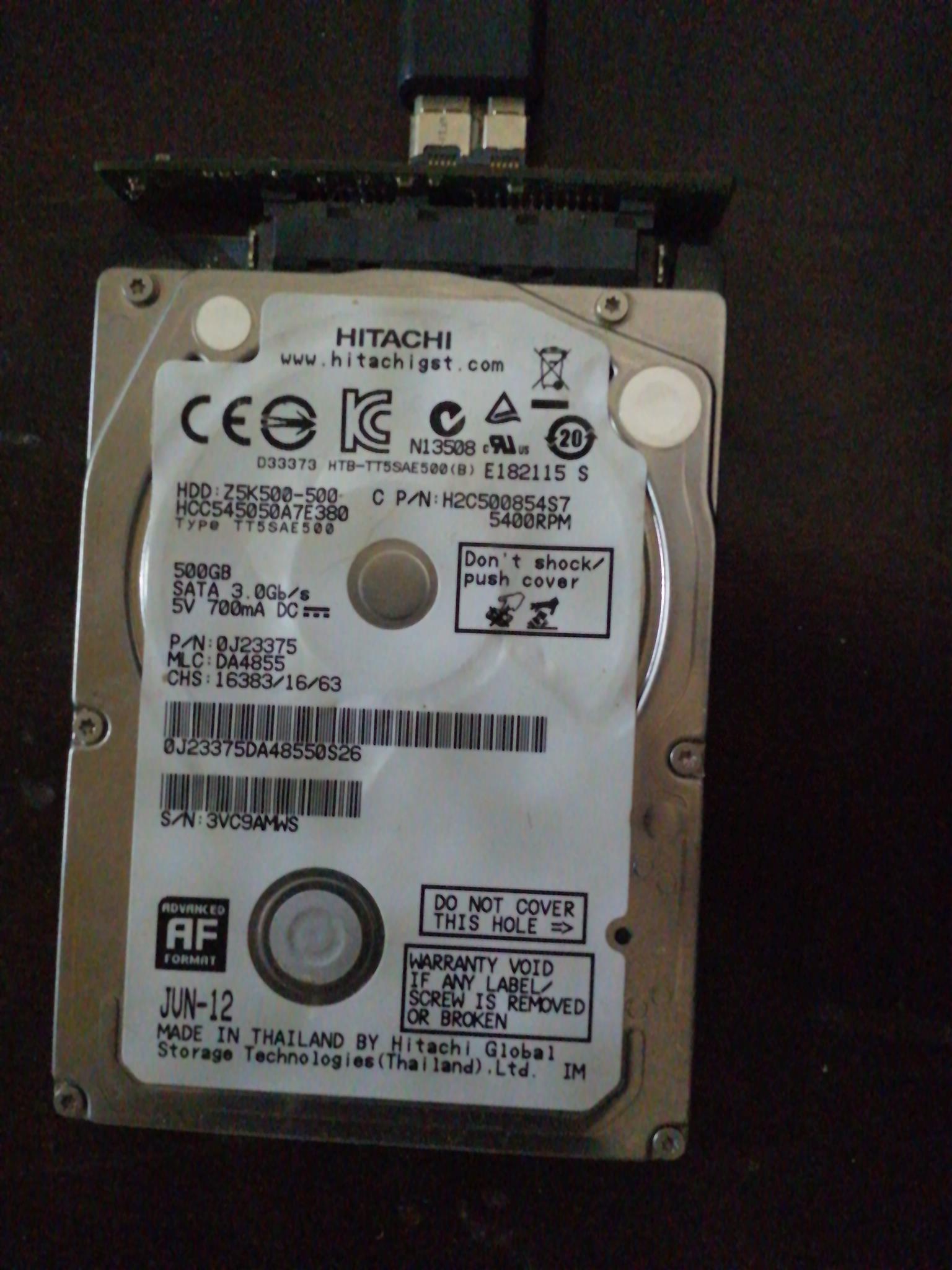 Hitachi 500gb with us adaptedr. Hhd(laptop) (can be used as external storage or internal for laptop) for sale krugersdorp. Phone on 0688038691view more. Still good working condition. 500gb