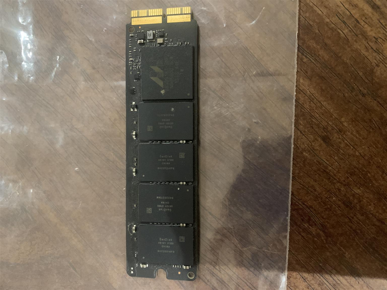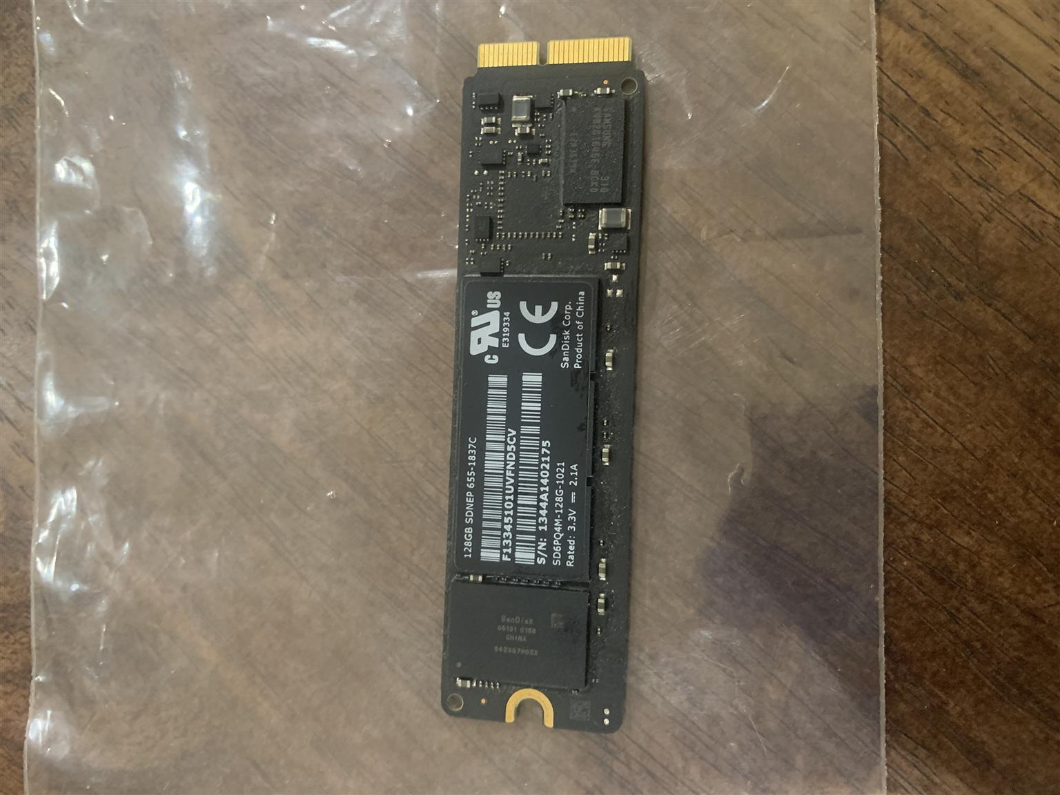 An Apple Original 128GB SSD (Solid State Drive) (NVME, Apple type) from a Macbook Air A1466 with Intel Core i5.