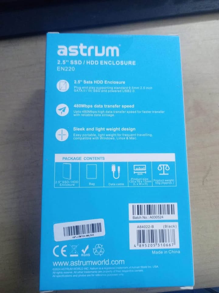 Astrum 2.5" SSD/HDD Enclosure. More details:Intention - For SalePrice - 430Region - GautengCity - Midrand