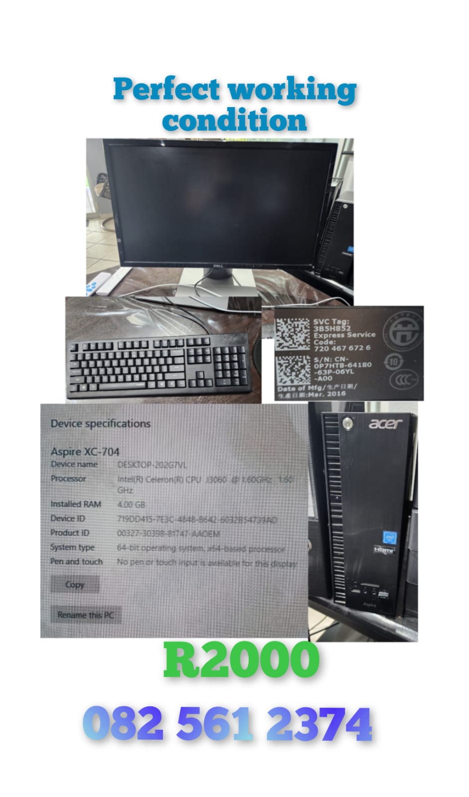 Acer tower and dell screen with keyboard all excellent condition