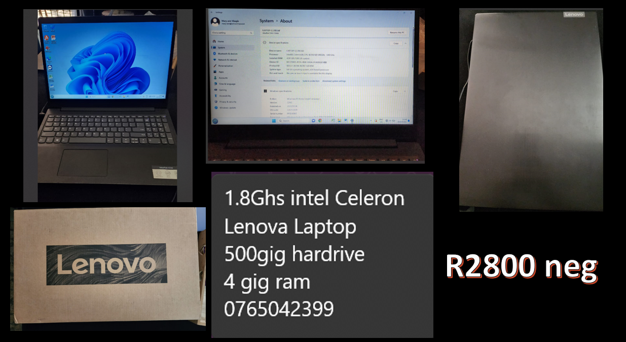 1.8Ghs intel Celeron Lenova Laptop 500gig hardrive 4 gig ram price neg