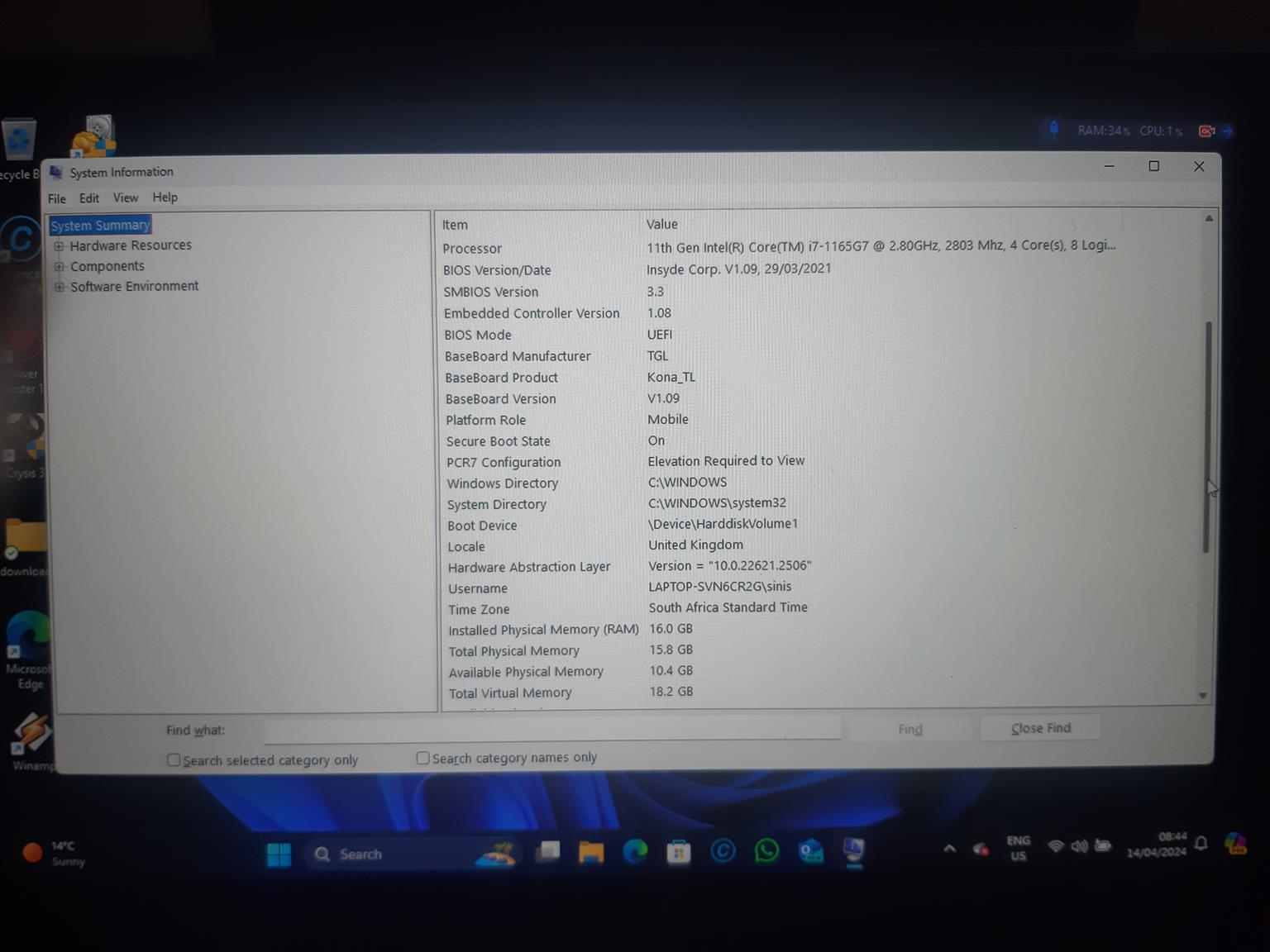 BIOS Version/Date Insyde Corp. V1.09, 29/03/2021