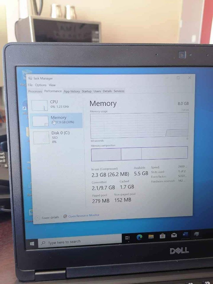 Dell laptop Core i5 quard core 1.7ghz 8th generation 8GBram DDR 4 256 SSD storage