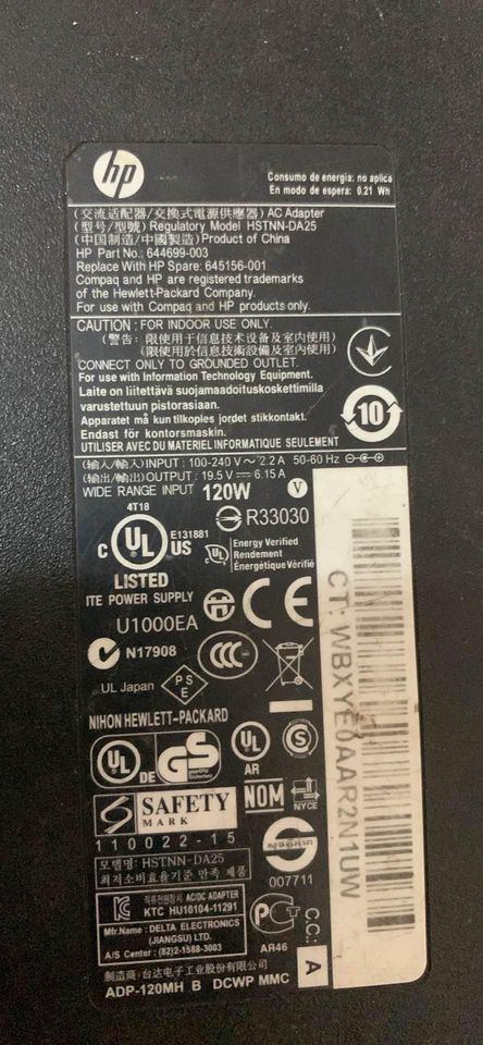 Hp laptop charger R200 280 Steve Biko road Gezina Pretoria