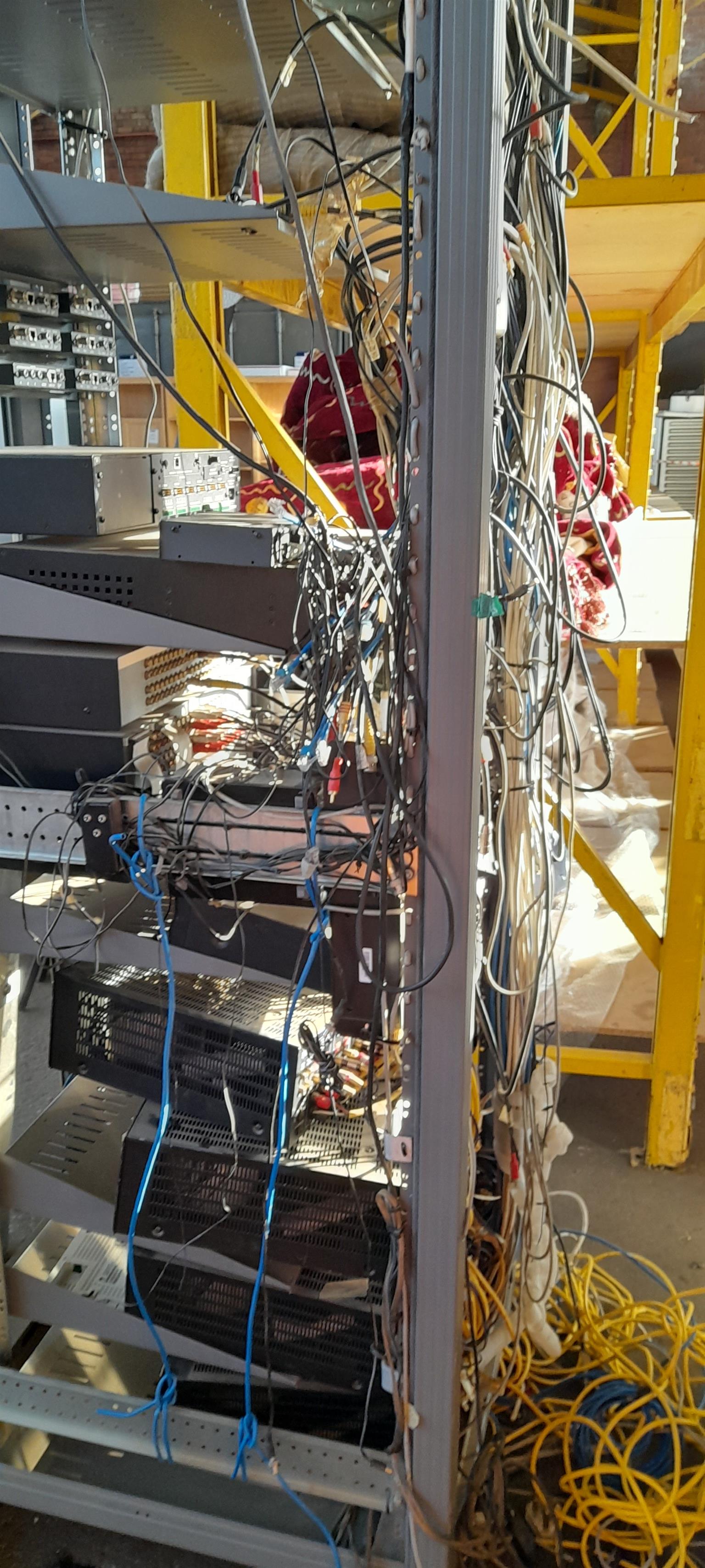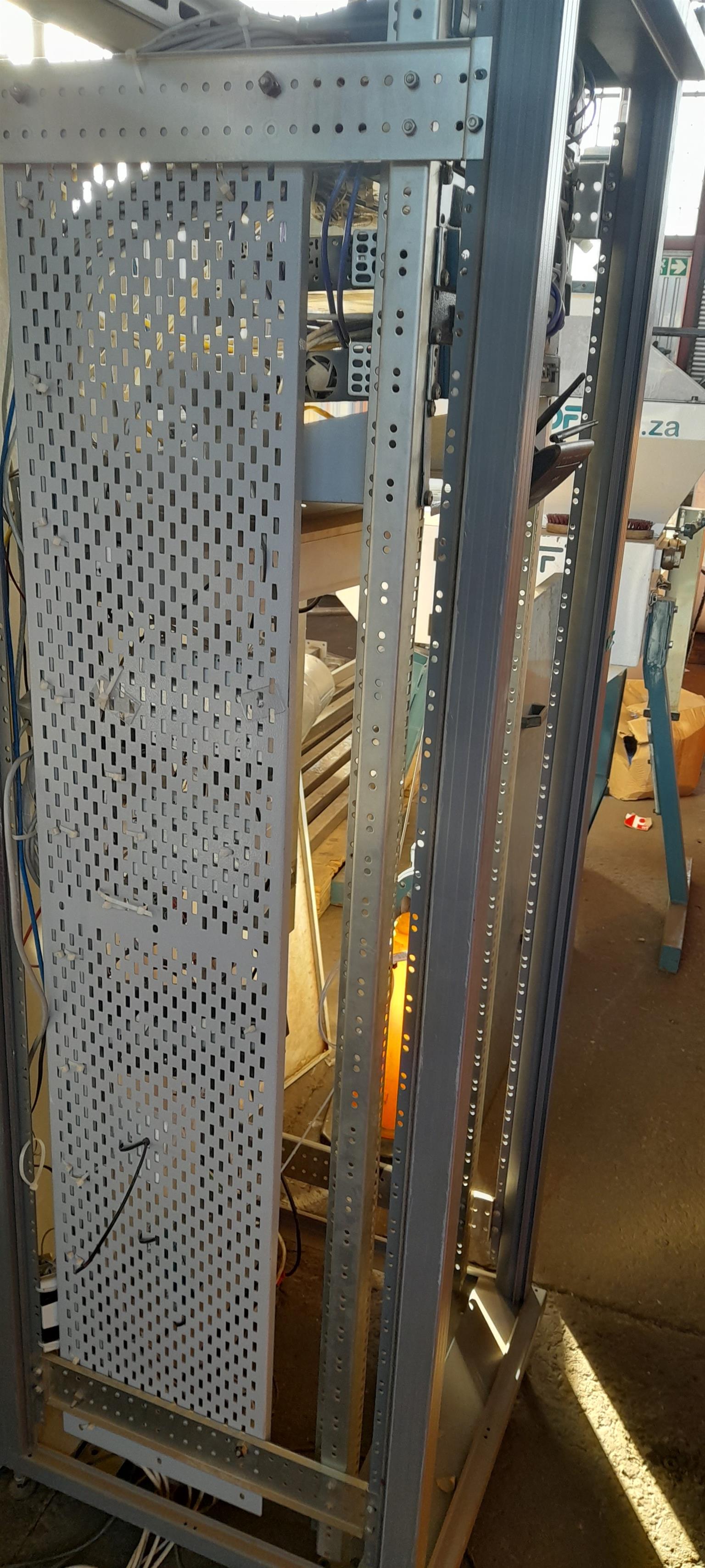 Computer server rack. Free-standing server cabinet manufactured with high strength steel and has 2 fans. Plus cables. 2 metres high. 600mm width. Dual cooling fans