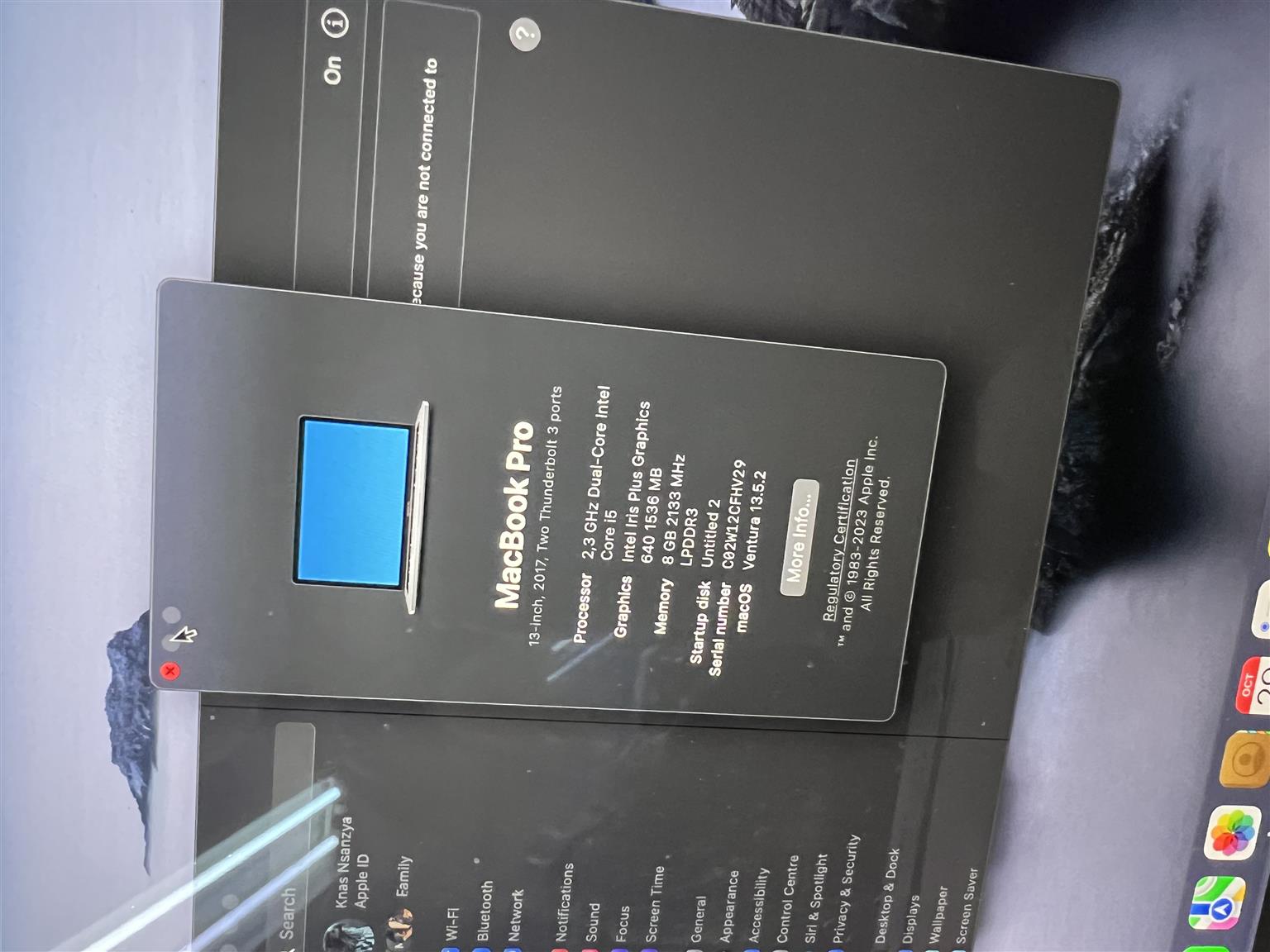 Apple Mac Book Pro for sale R11999.00. In a good and working condition backed by a six month guarantee. 2.3 GHz, i5, 8GB. Silver in colour. Reference : CAMNT022275