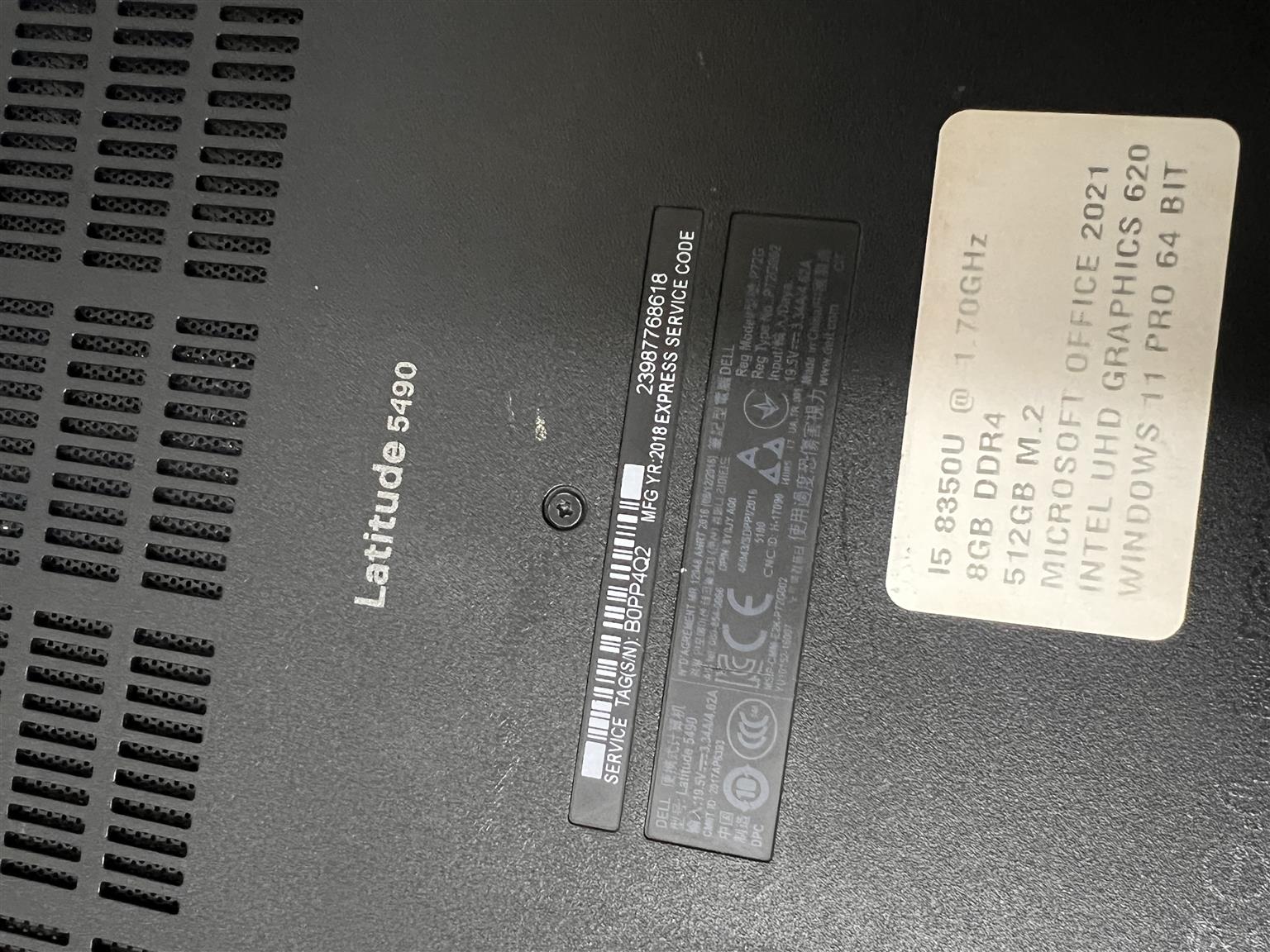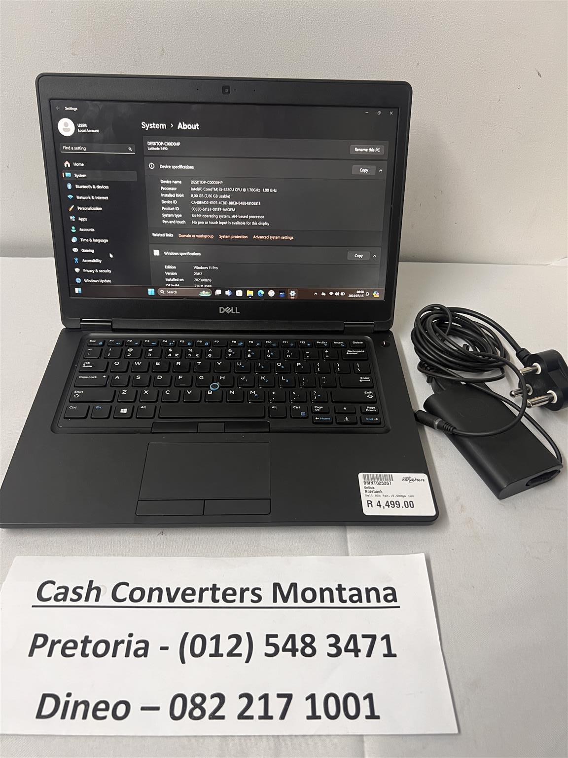Dell Laptop Latitude 5490 i5 for sale R4499.00. In a good and working condition backed by a six month guarantee. 1.90GHz, 8.00GB RAM. Black in colour. Reference : BMNT023267