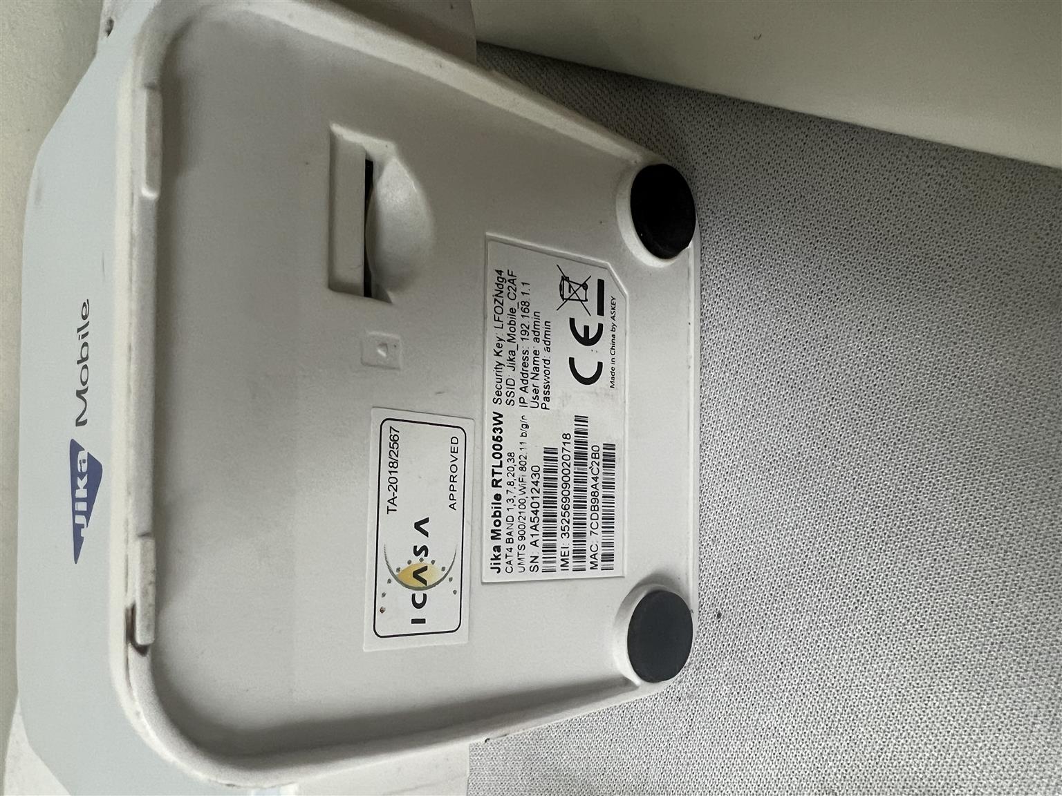 Jika Mobile Router RTL0053W for sale R599.00. In a good and working condition backed by a six month guarantee. White and blue in colour. Reference : BMNT016589