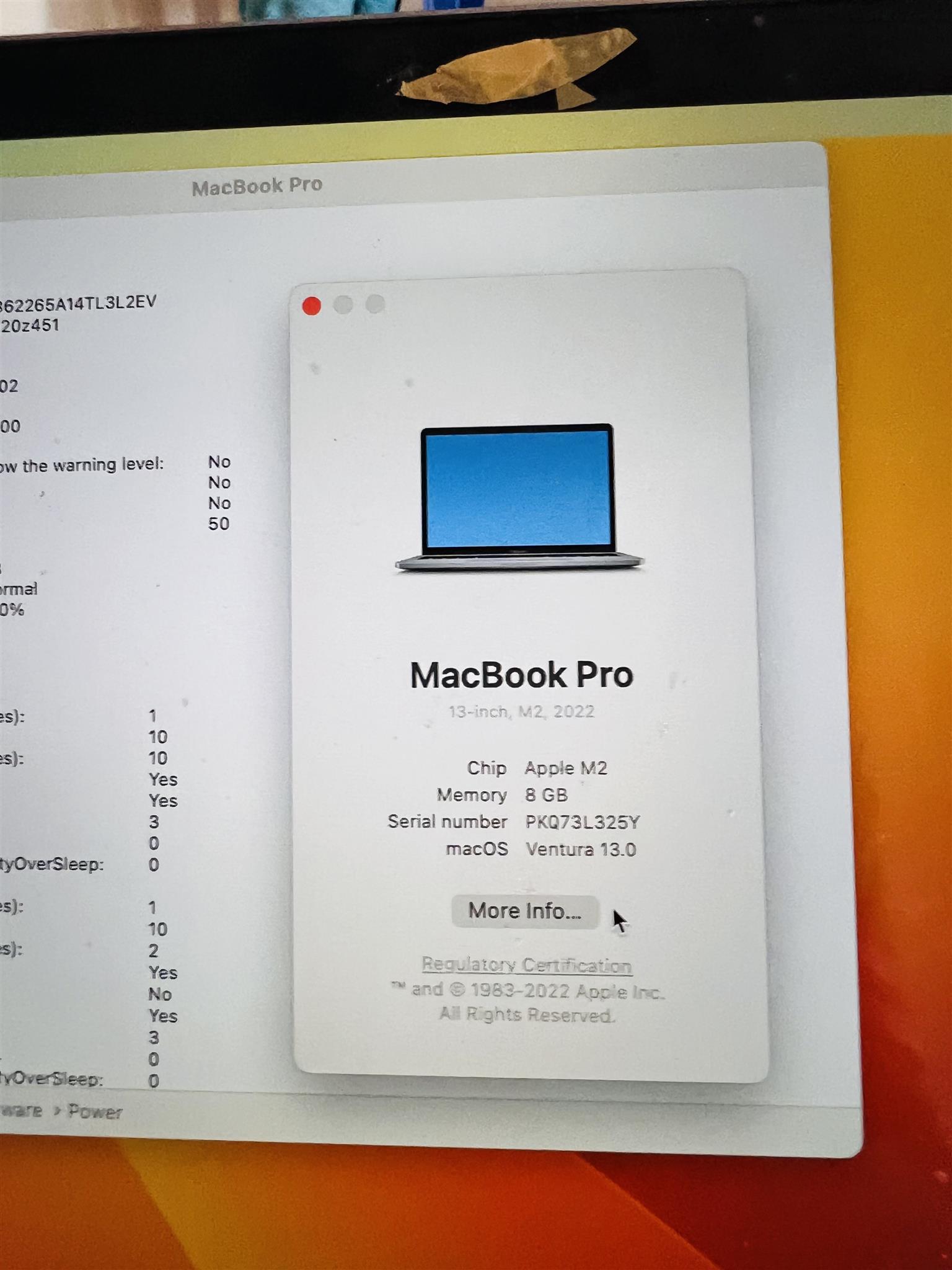 MacBook Pro M2 2022 8gig 256 ssd