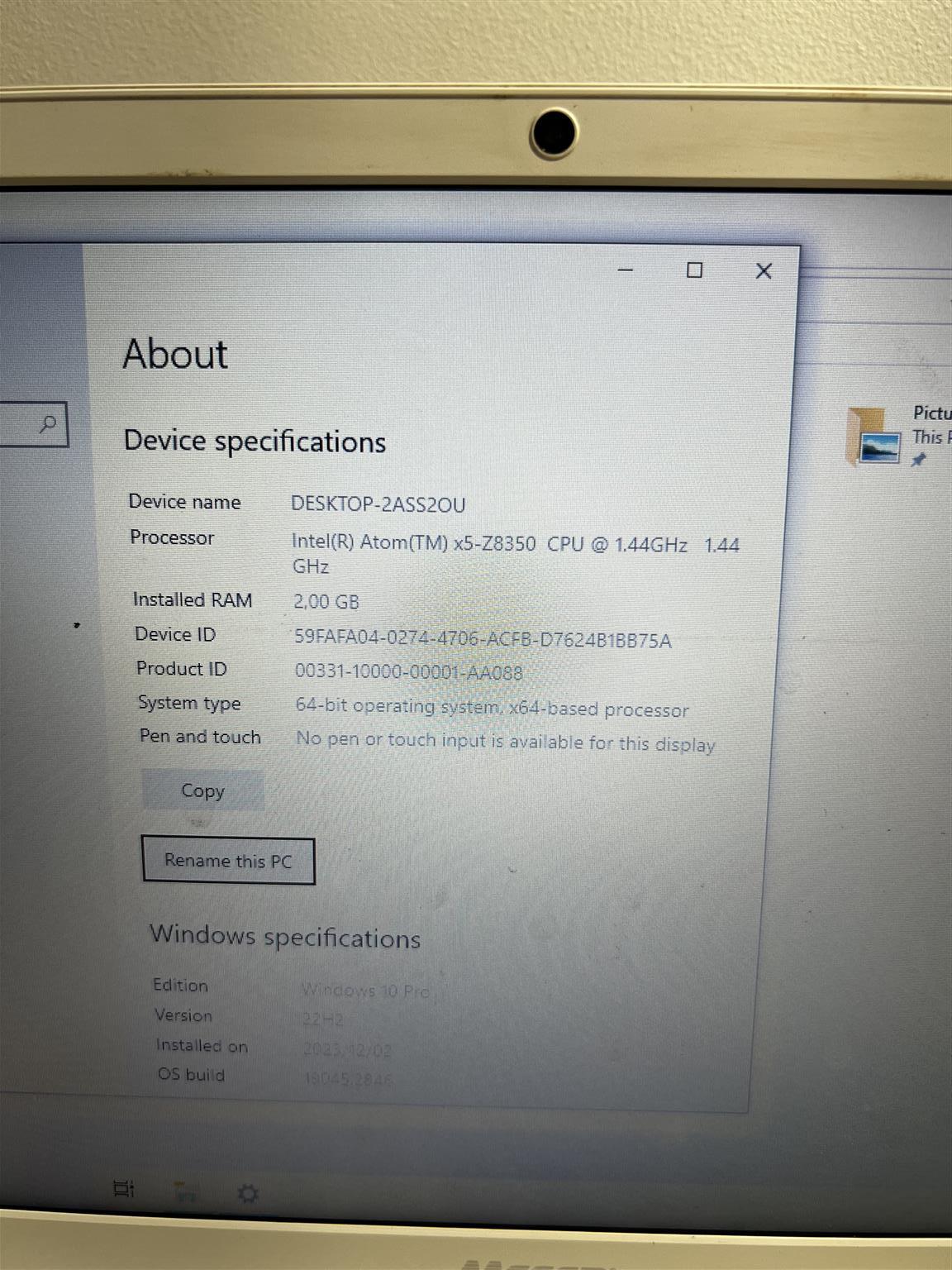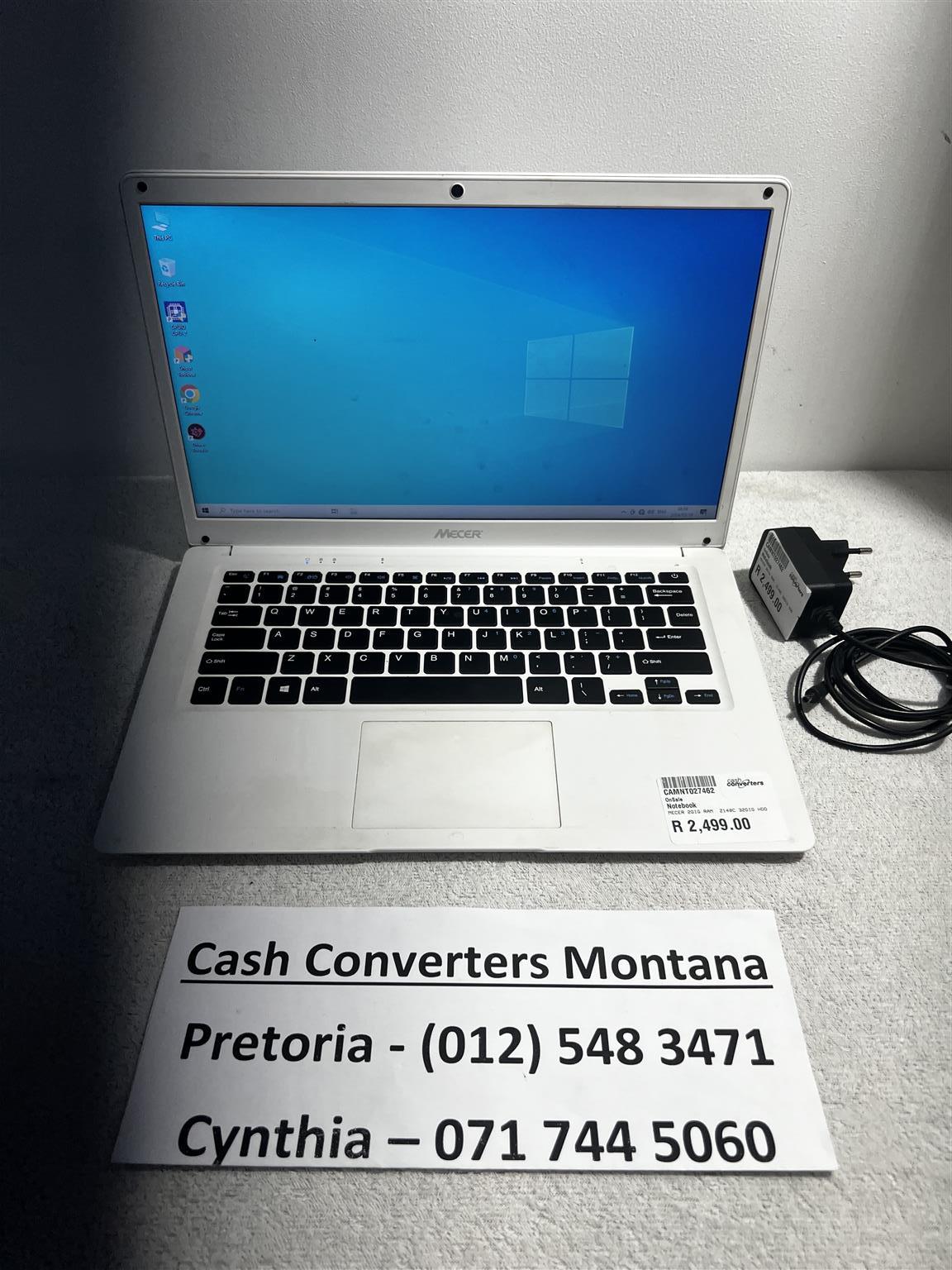 Mecer Laptop Z140C for sale R2499.00. In a good and working condition backed by a six month guarantee. 1.44GHz, 2.00GB RAM. White in colour. Reference : CAMNT027462