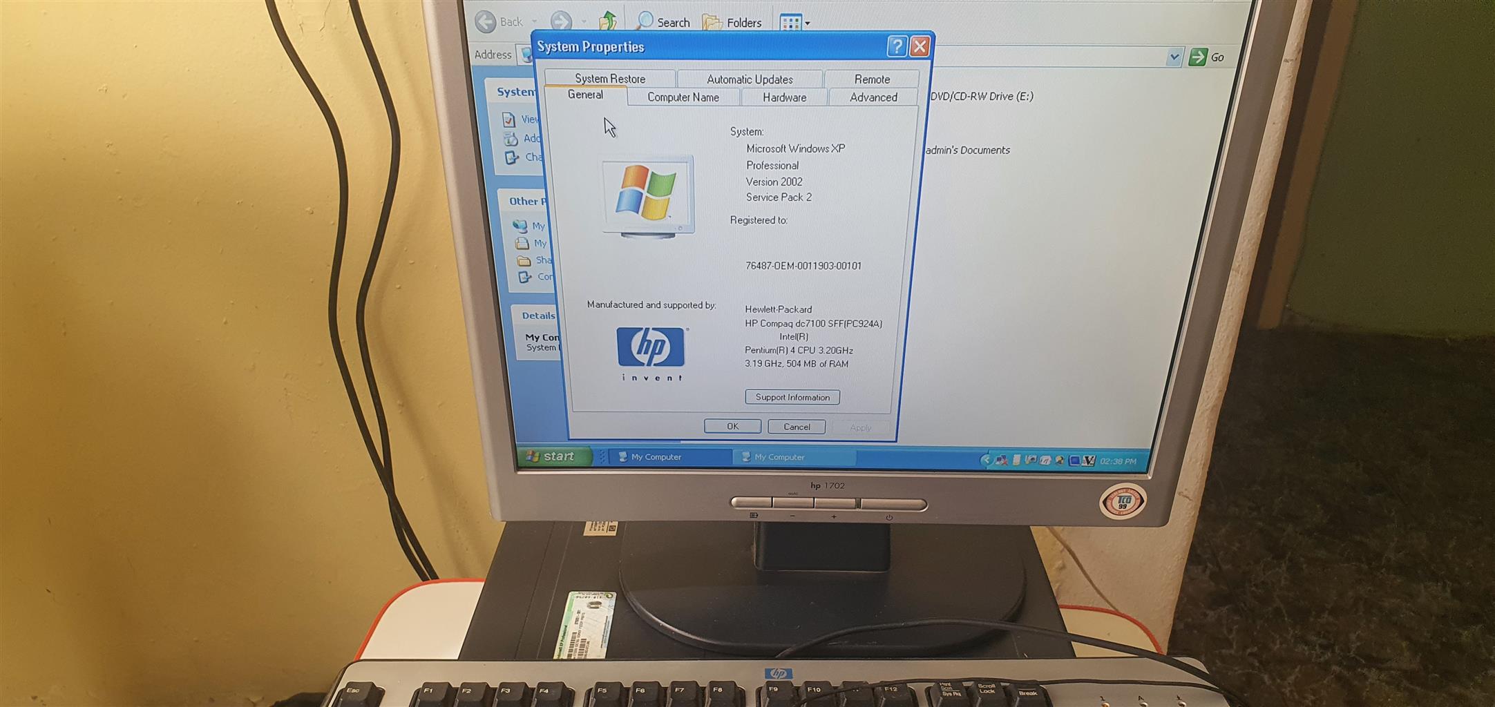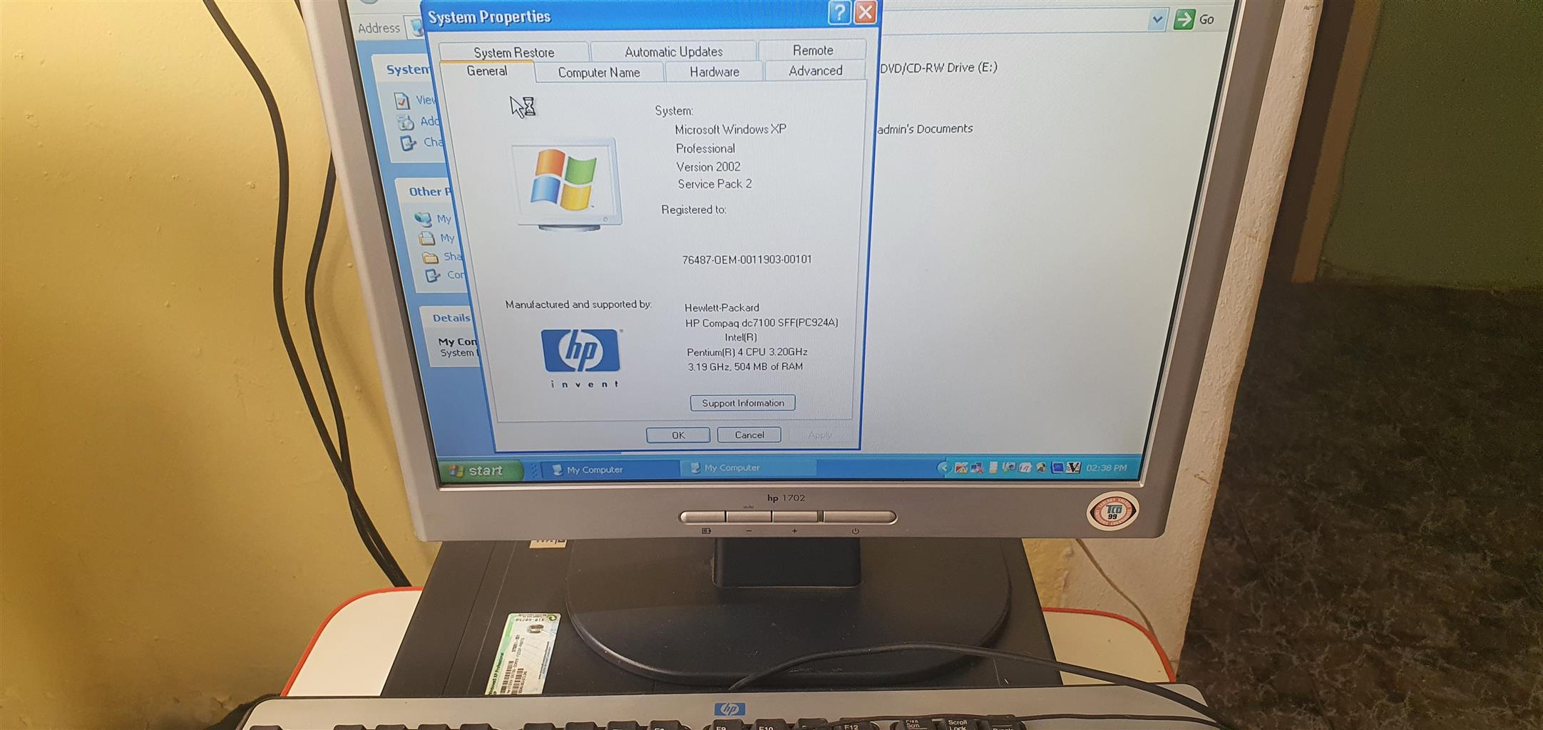 Hewlett Compaq dc 7100 intel R with smart screen hp 1702. CPU 3.20GHz, 504MB of Ram. In good working condition. Don't miss out.