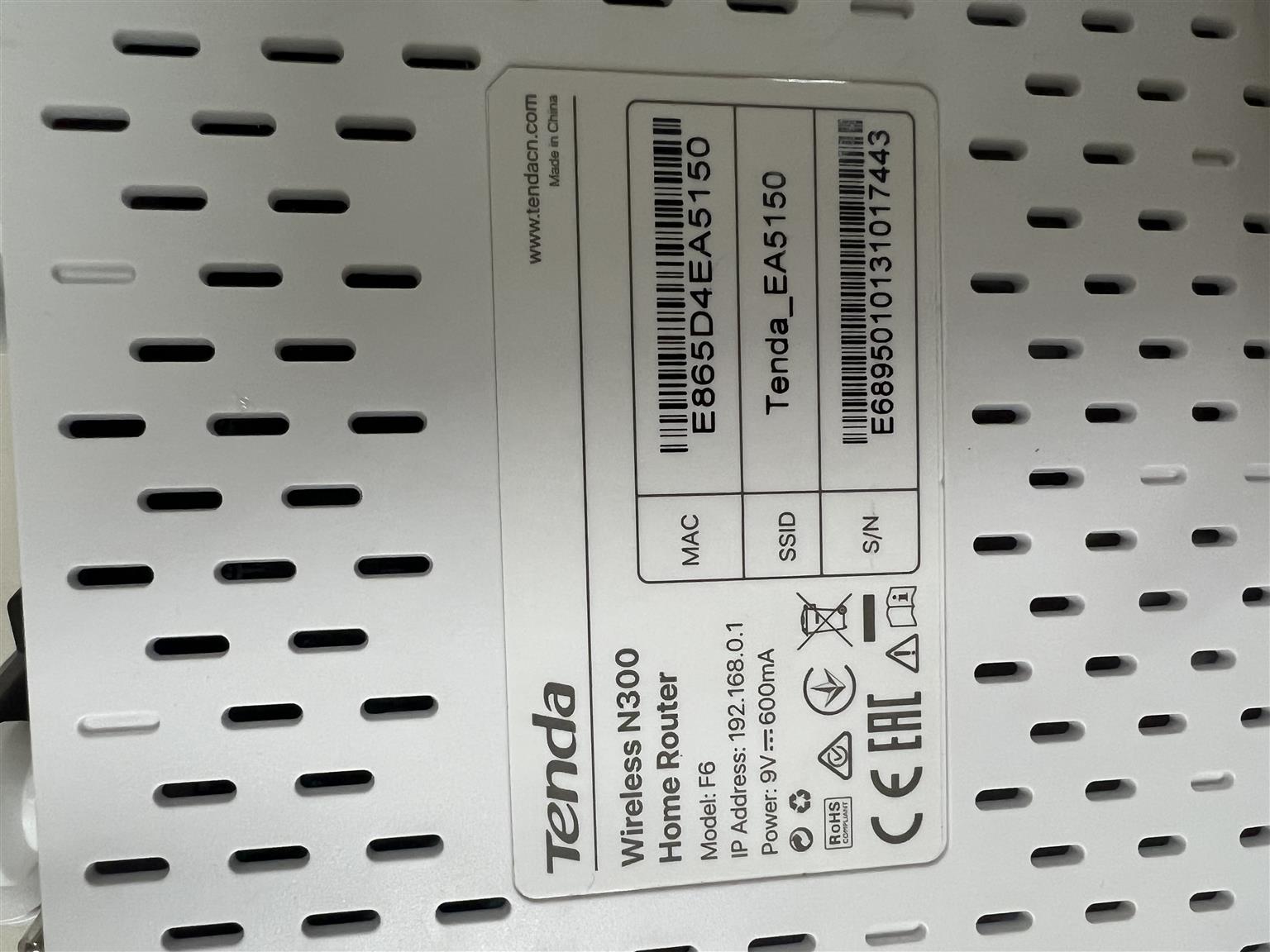 Tenda Wireless Router N300 F6 for sale R1599.00. In a good and working condition backed by a six month guarantee. White in colour. Reference : CAMNT011479