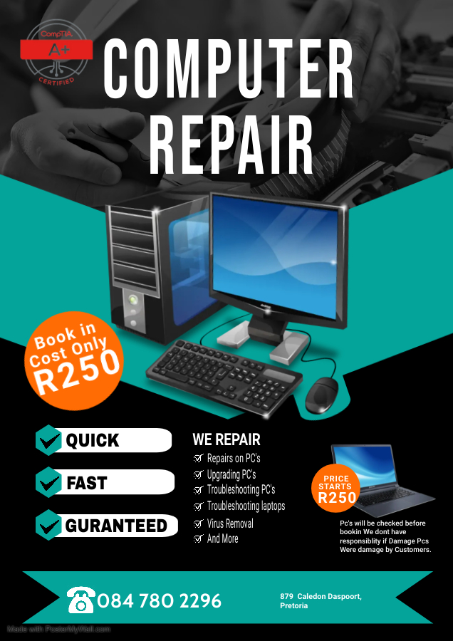 Your PC will be fixed by Comptia Certificated Technician making sure its working like it should.