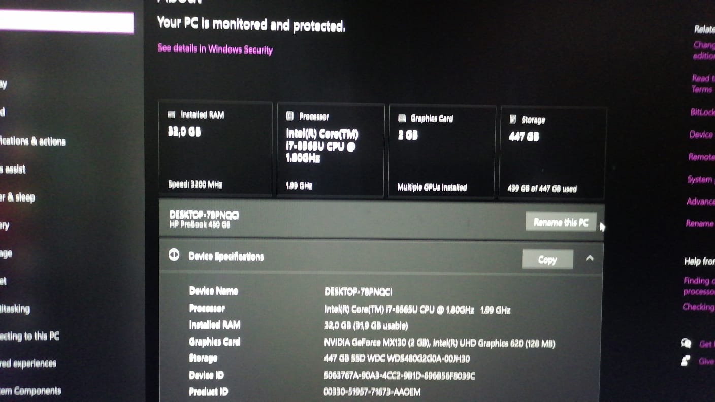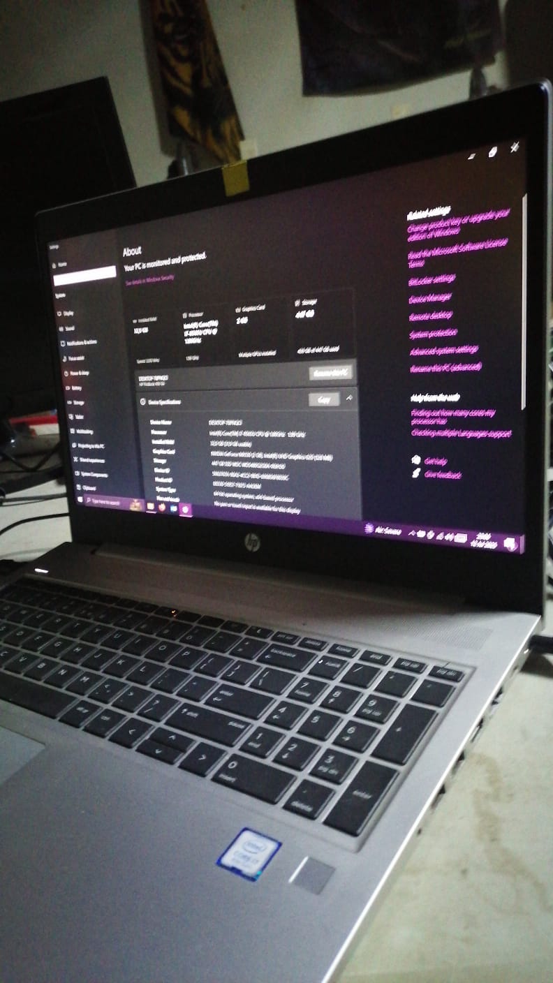 HP ProBook 450 G6 15.6-inch FHD Laptop - Intel core i7 - 8th Gen - 8565U CPU @ 1.80GHz 199GHz - 32GB RAM - 1TB Hard Drive - 2 USB ports – 1x Type-C port (Power delivery, DisplayPort™) - 1 RJ-45 network port – Bluetooth – WIFI Network interface Connection - 1 HDMI - Camera 720p HD webcam - Audio features: digital microphone and Microphone port - Pointing device: Click pad with multi-touch gesture support - Keyboard: Full-size, with numeric keypad. NB: NOT WASTING TIME ON SCAMMERS. CASH ON COLLECTION.