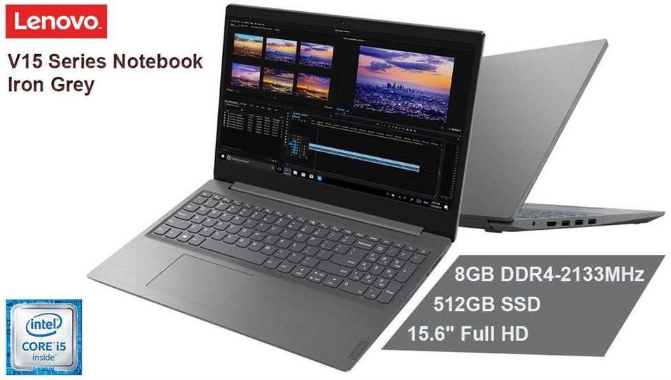Lenovo V15 Series Notebook Iron Grey – Intel Core i5 Ice Lake Quad Core i5-1035G1 1.0Ghz with Turbo Boost up to 3.6Ghz 6MB L3 Cache Processor, 8GB DDR4-2666 SO-Dimm Memory, 1 Memory slot, 512GB SSD Solid State Hard Drive PCIe, NO optical drive, 15.6″ FULL HD (1920 x 1080 resolution) LED Backlit Display, Intel UHD Graphics, 802.11ac Wireless Lan, Bluetooth, Webcam, 2 Cell battery, Standard US Keyboard, 2x USB-A 3.0 (Gen 1), 1xUSB 2.0 (Gen 1), HDMI output, SD Card Reader, 1.9 kg, Microsoft Windows 10 Professional 64 bit Edition, Retail Box, 1 year warranty Product Overview: Get the job done Think of the Lenovo V15 as your office manager, executing on your everyday tasks with efficiency. It will keep your business productive and your data secure, while its thinner, smaller design and narrower side bezels put a clean, professional look on your desk—or wherever you choose to use it. Highlights: • Intel Core i5-1035G1 1.00GHz Quad Core (Up to 3.60GHz Boost, 6MB SmartCache) • 15.6″ Full HD (1920×1080) Anti-Glare Display • 8GB (1x4GB + 1x4GB On-Board) DDR4-2133MHz • 512GB M.2 PCI-E NVMe SSD • 2x USB-A 3.0 Type-A Gen 1, 1x USB 2.0 Type-A Gen 1 • 1x HDMI, SD Card Reader, 1x Combo Audio Jack • Wi-Fi 802.11ac + Bluetooth 4.2 • Full-Sized Standard Keyboard • Windows 10 Pro 64-bit To check stock availability WhatsApp & Call Us: [hidden information]