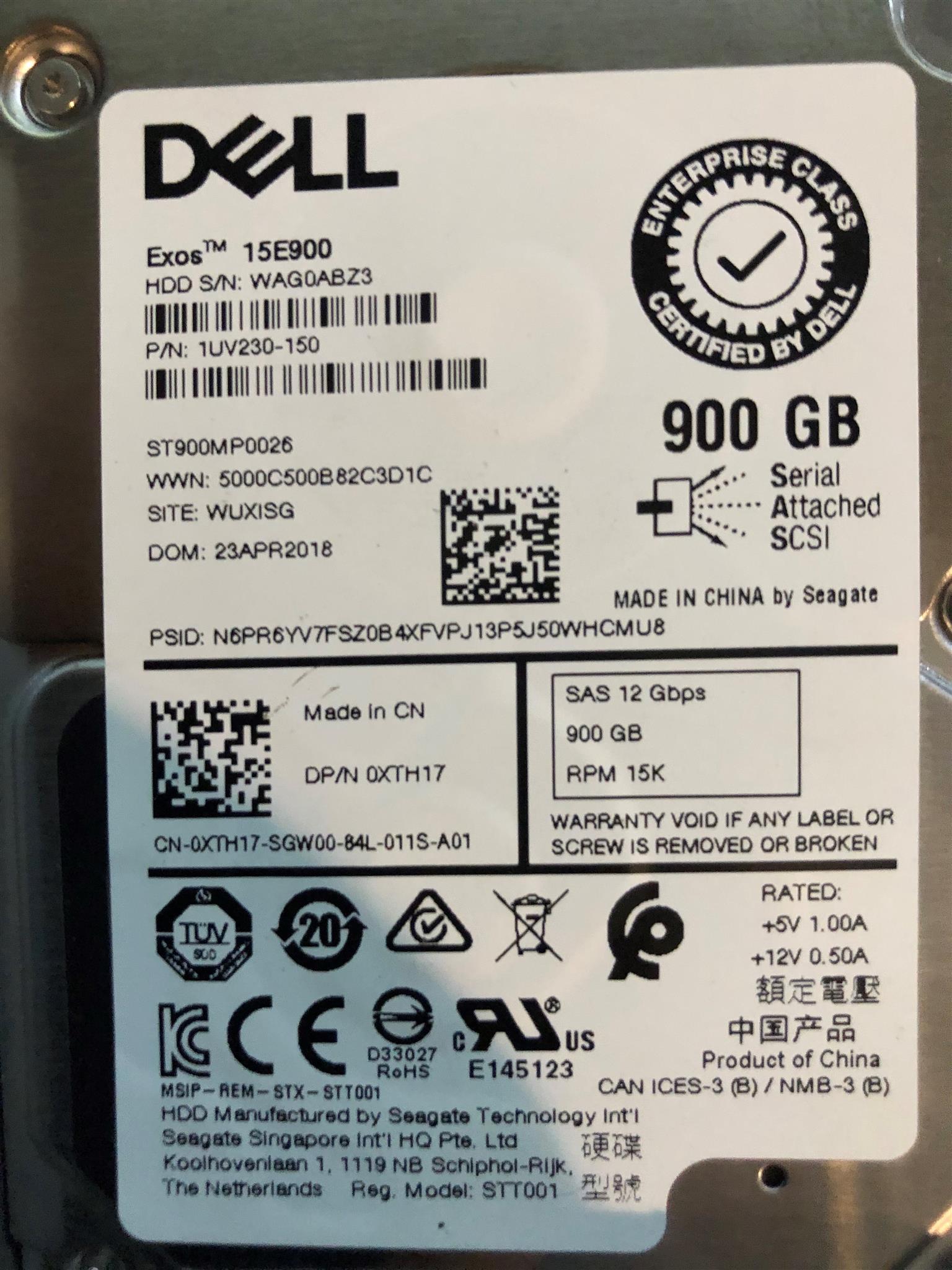 4x 2.5" DELL EXOS 900GB SAS hard drives like new, perfect for server units. R5000.00 each, or make me an offer for the lot.