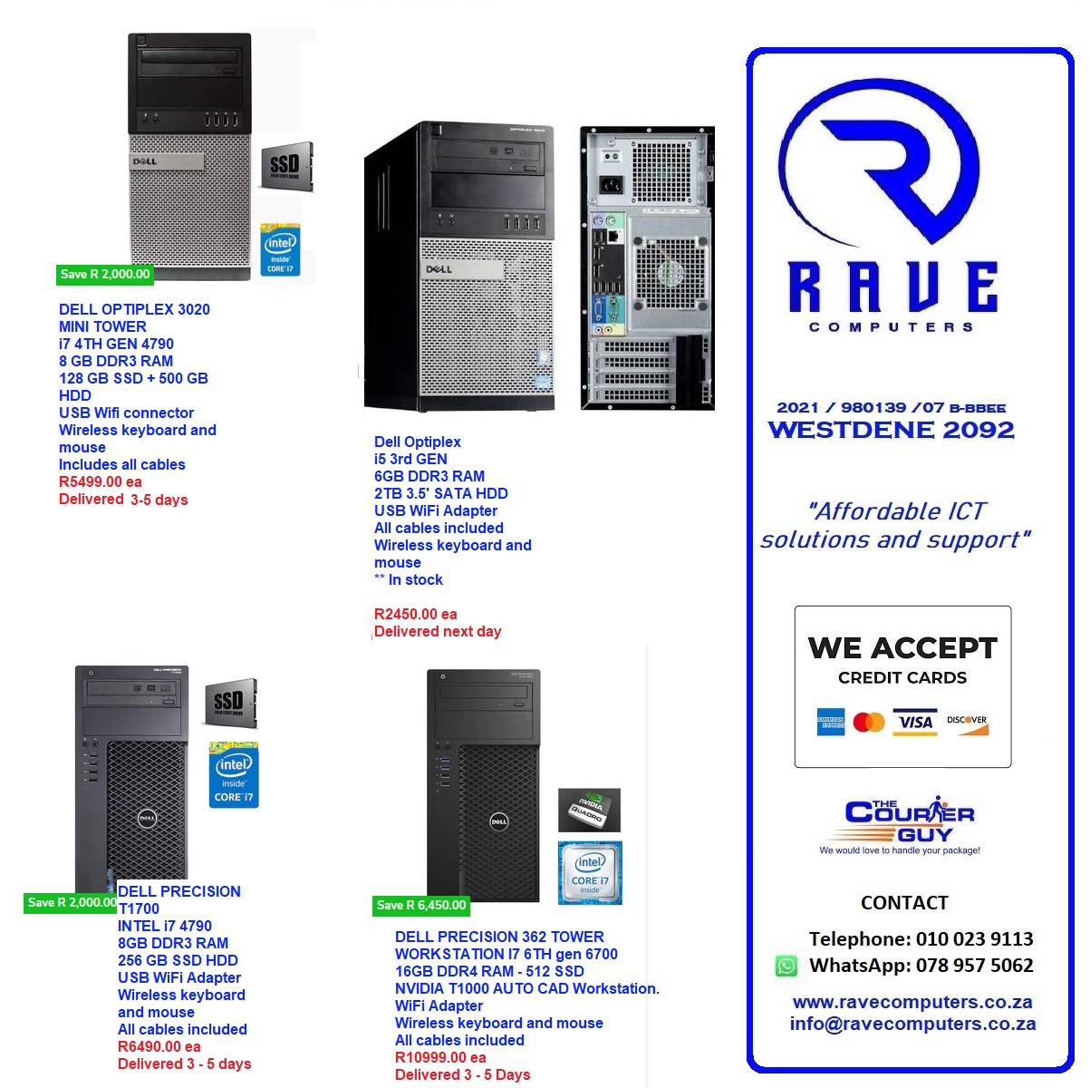 Quality refurbished computers including laptops and desktop computers. Specifications can also be tailored to your requirements.