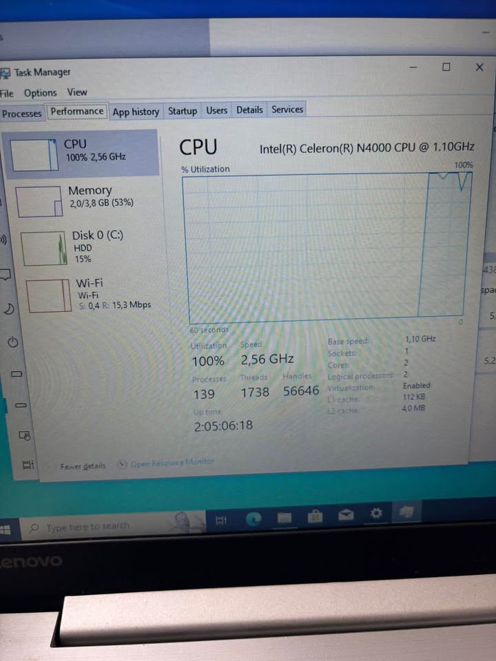 Intel Celeron N4000 CPU @ 1.10Ghz 4GB RAM 500GB storage HDD