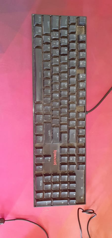 Mechanical keyboard with red backlit LEDs, blue switches, selling my gaming equipment as I stopped playing games. Only in-person sales are considered.