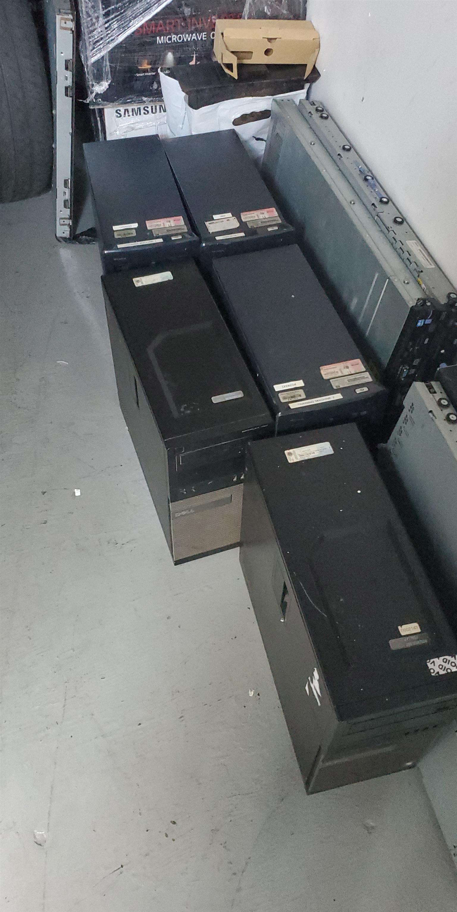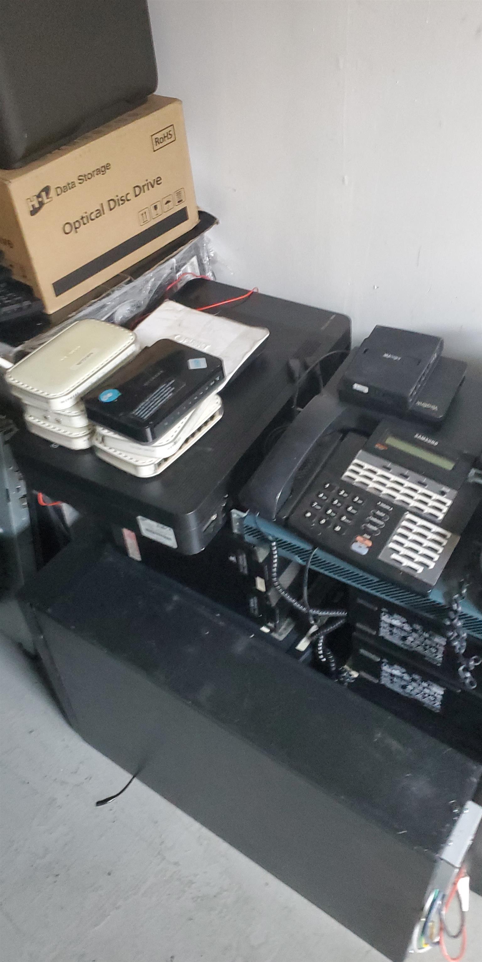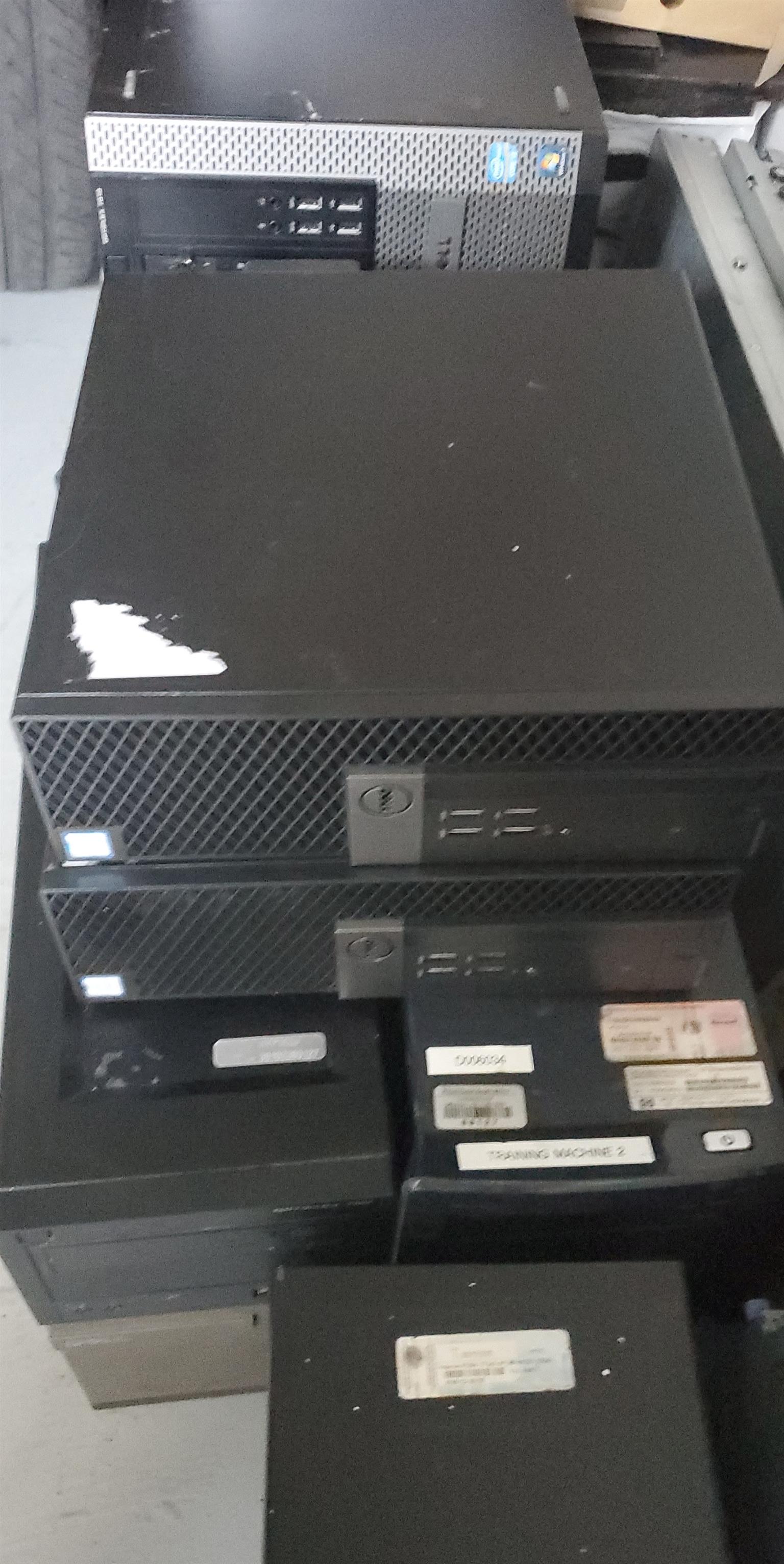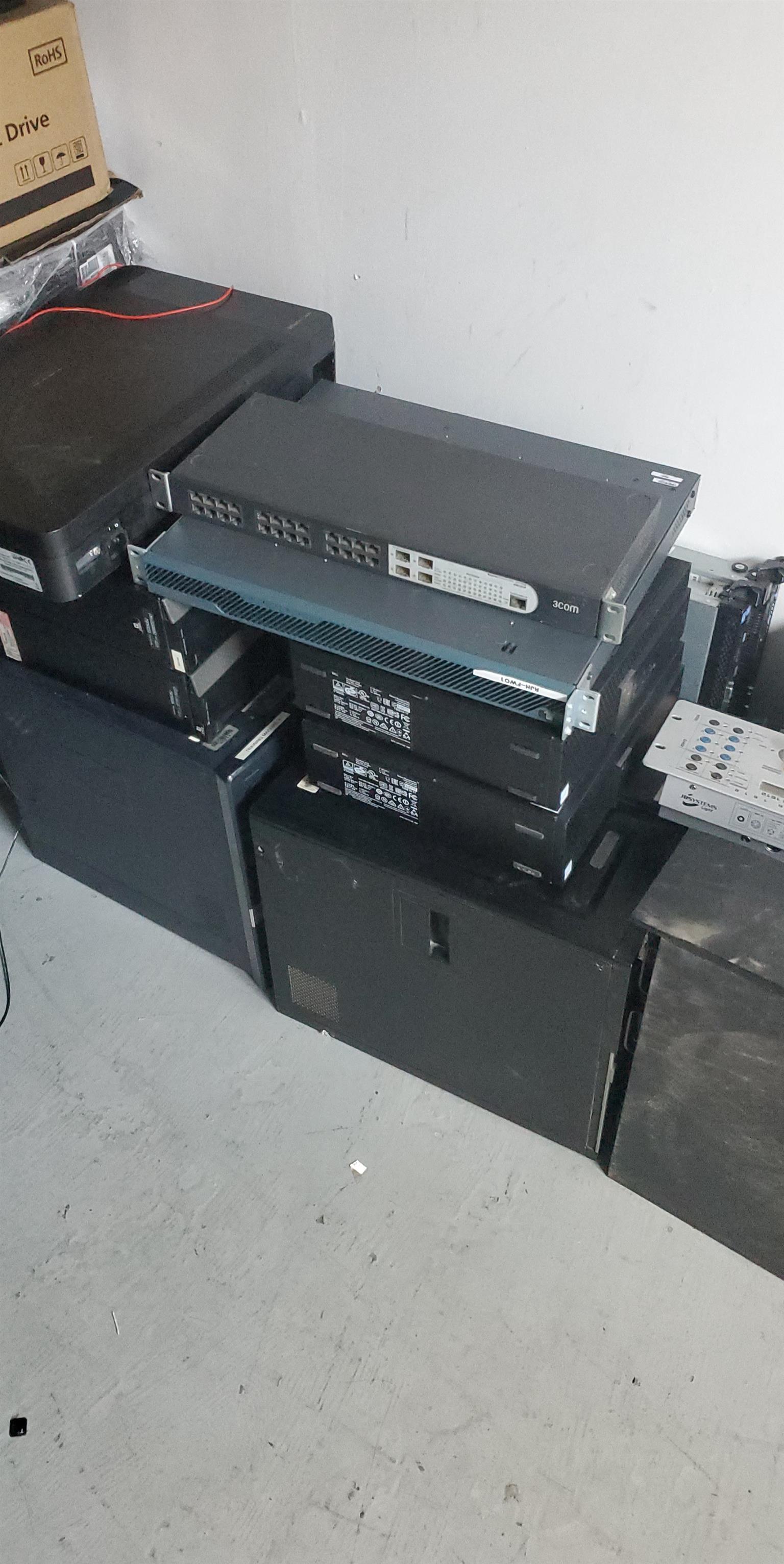 13x PCs 6th gen & 4th gen i3s no h/drives. No ram. Savers x 8 complete with rams and h/drives. Switches x3 .UPS 3kv x3 and printers x8. All must go to the highest offer.