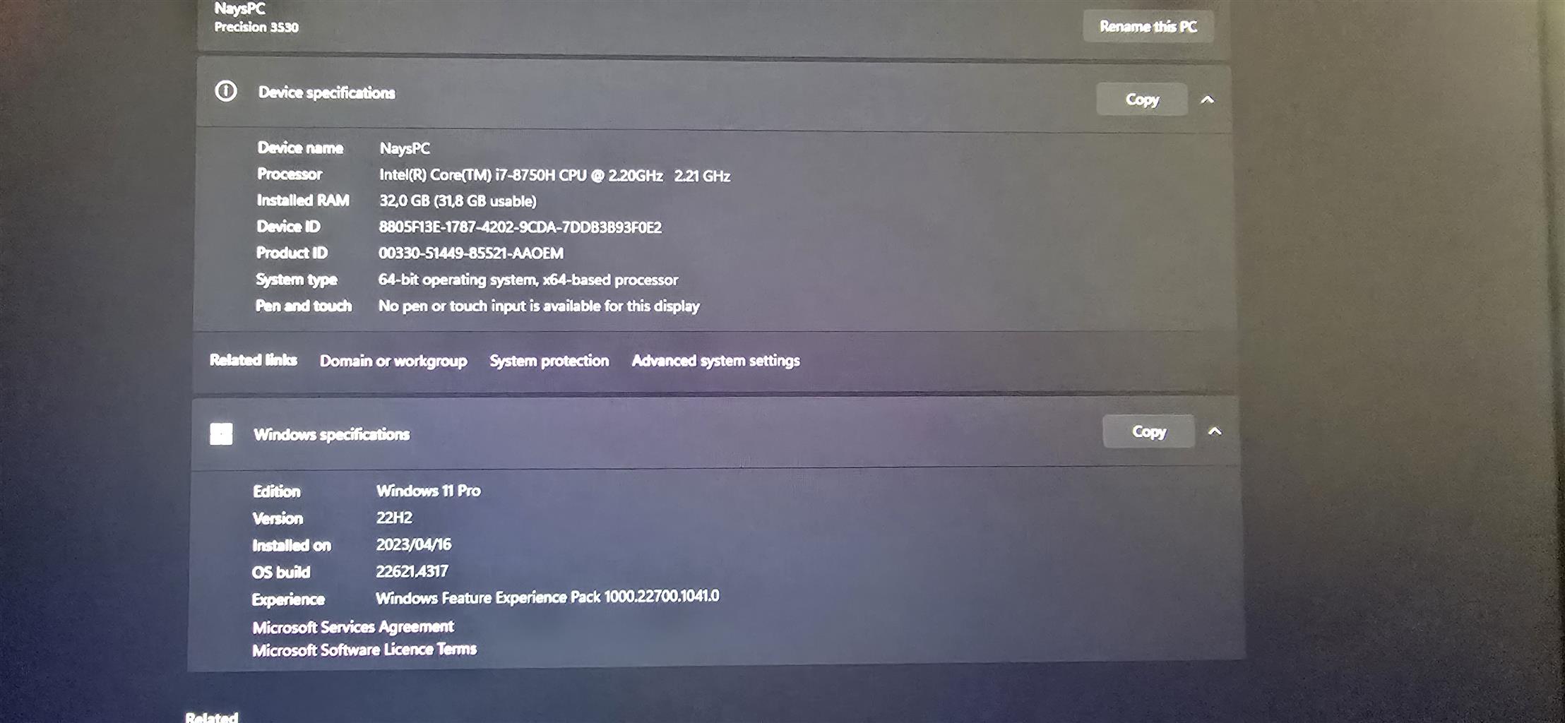 Intel 8th Gen Core i7-8750H CPU @2.20Ghz