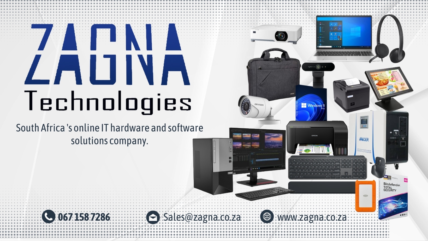 Zagna Technologies is a South African online IT hardware and software retail company that specialises in providing ICT equipment as well as solar and security systems. We source our products from local reputable suppliers and distribututors and we supply products from brands such as HP, Dell, Lenovo, Hikvision, Microsoft, Acer, Logitech, Bitdefender ,Mecer, Seagate, Logitech and Asus just to name a few. So if you're looking for a specific product or would like to compare prices contact us for a quote today. If we don't have it we'll search high and low for it.