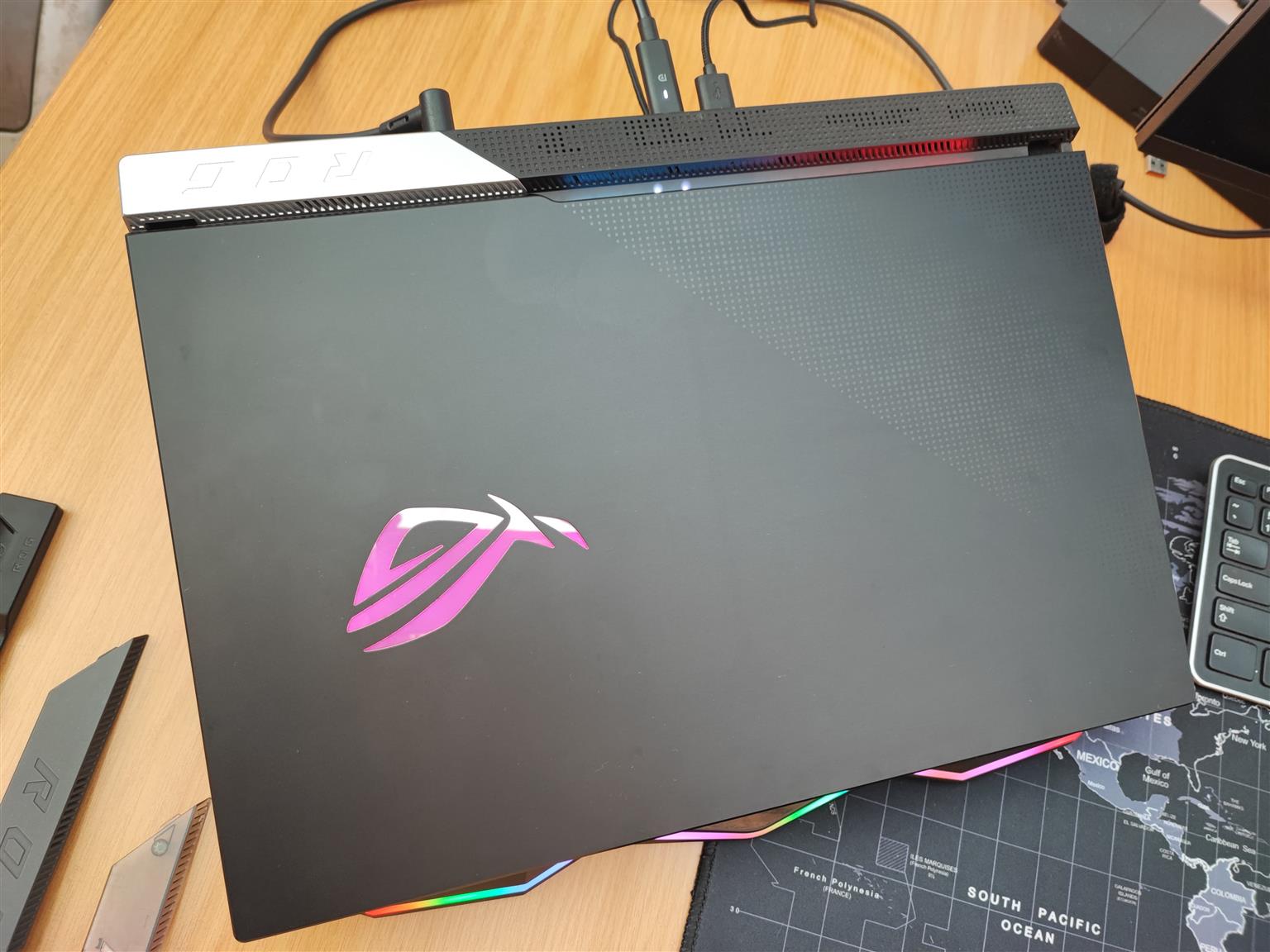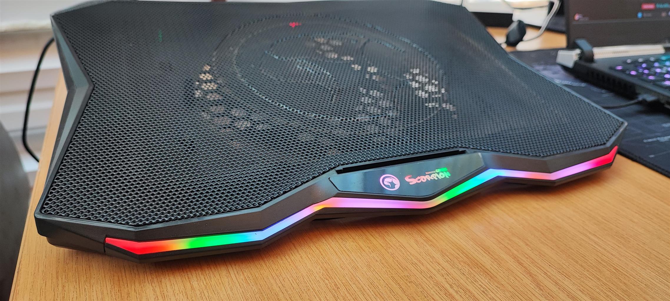 Selling with an RGB Scorpion cooling pad featuring a 120mm fan, along with all accessories and a camo laptop bag. As shown in the pictures, the laptop was exclusively run in long-life battery mode, ensuring it never charged beyond 60% to maintain its battery lifespan. It has never been taken out of the house and has primarily been used as a desktop, which explains its excellent condition.