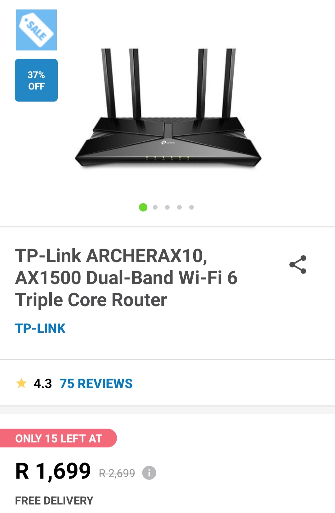 Hi all, got the following for sale. TP-Link Archer AX1500 Dual Band Gigabit Router - New WIFI 6 Technology plus