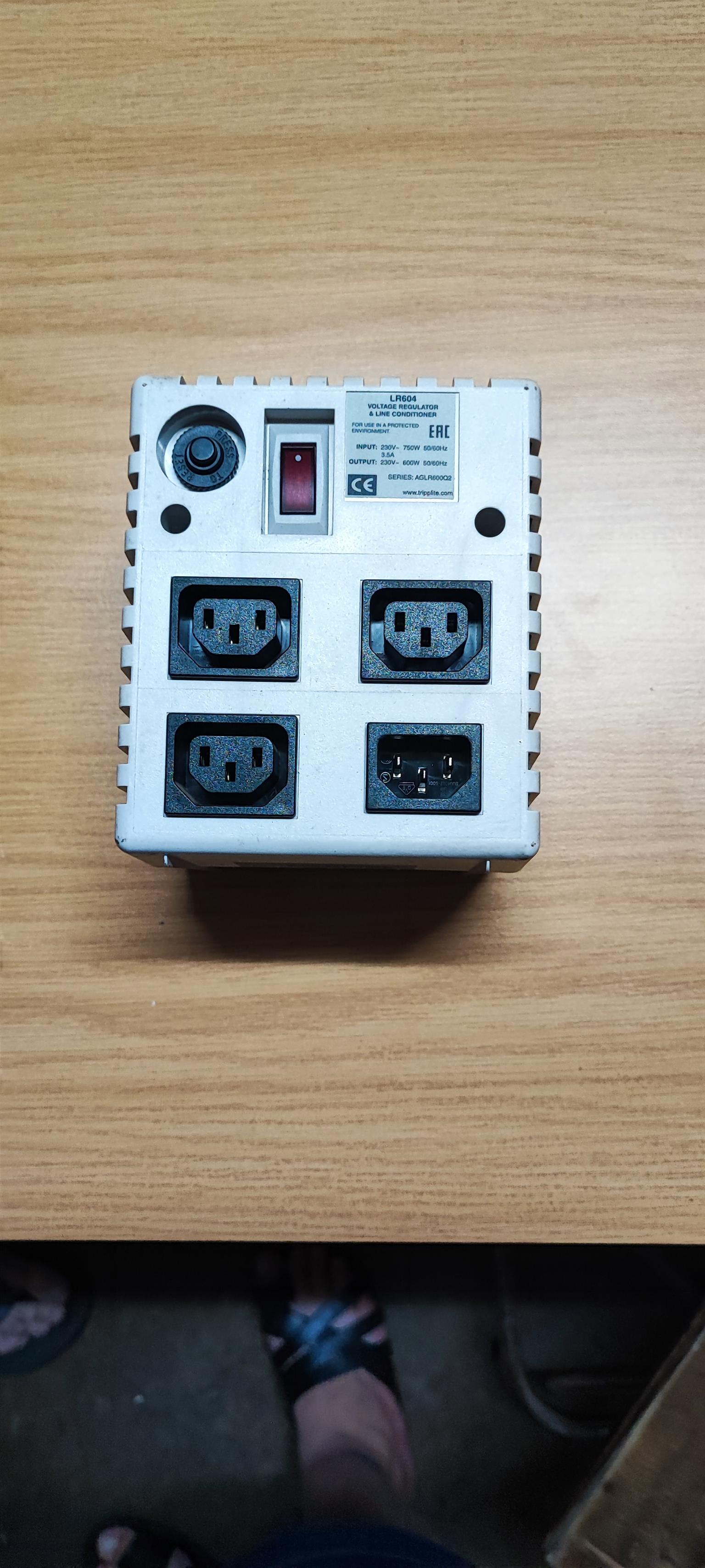 Tripp lite voltage regulator and line conditioner LR604 600w protect your equipment against high and low voltage spikes still working 3x220v outputs