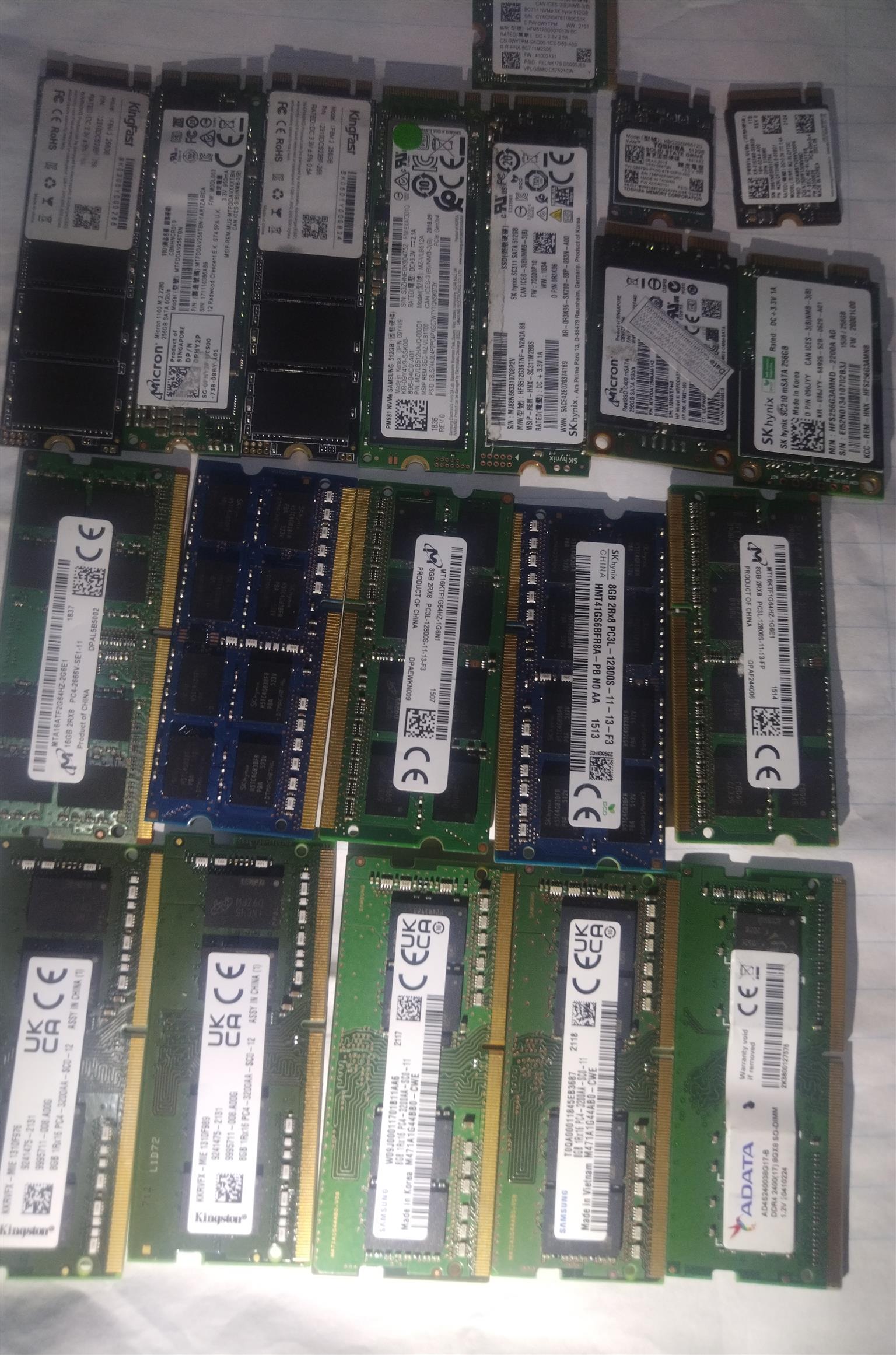 Rams and SSD8gb, 16gb, 4gb256GB, 128gb, 512gb1TB