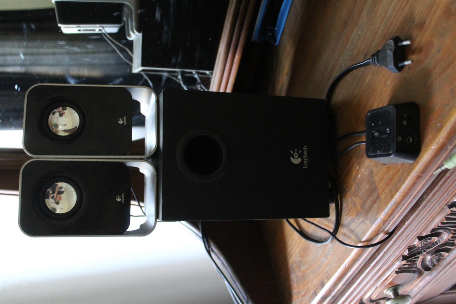 Urgent Immagration SaleLogitech Computer speakersHeadphone Jack2 x Speakers1 x SubwooferWorking 90% (AUX cable temperamental)