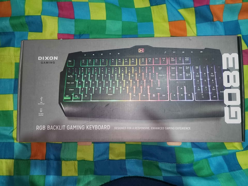 Dixon G083 RGB backlit gaming keyboard in perfect working condition. Well taken care of. No faults, all keys work perfectly. Suitable for gaming, school, office, and everyday PC use. Test before purchase welcome. Only selling because of an upgrade. Location : Westridge, Berea Contact : [hidden information] or [hidden information]