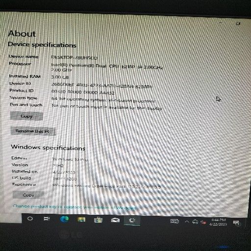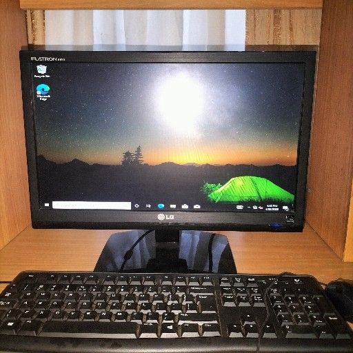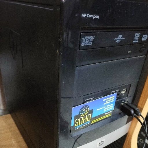 HP Compaq Desktop tower. Intel CPU 2.00GHz, 3.00Gz RAM, DDR 2, 220GB hard drive, window 10 operating system installed, 64 bit operating system, 17inch LG monitor, keyboard, mouse. Included.