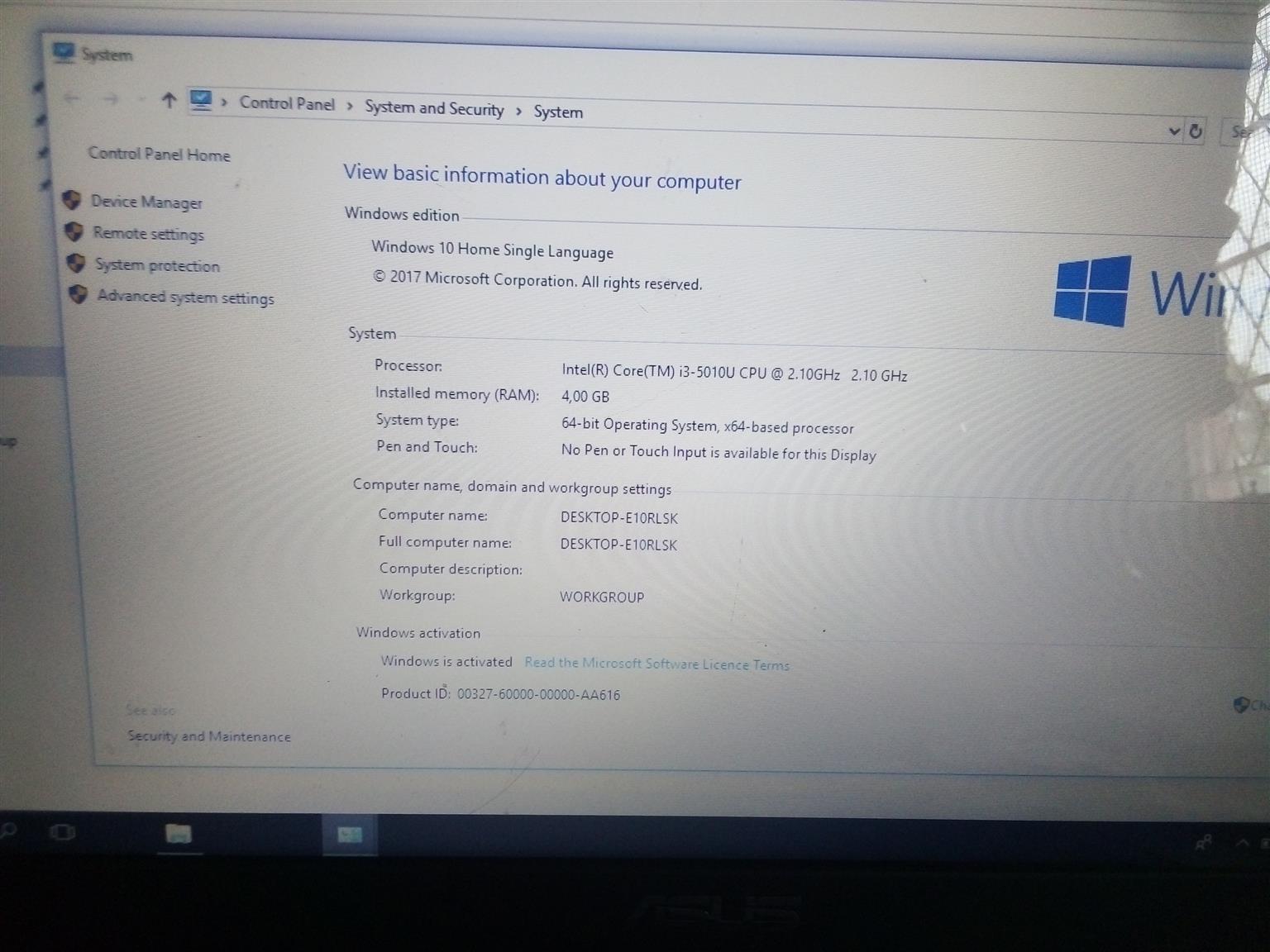 Intel(R) Core(TM) i3-5010U CPU " 2.10GHz 4GB Ram, 500GB Storage, 64-bit operating system, x64-based based Processor. This is a used Laptop, it is fully functional, but you will need to plug in a mouse as the internal mouse is faulty. Please see pics - Cash only, only serious buyers.