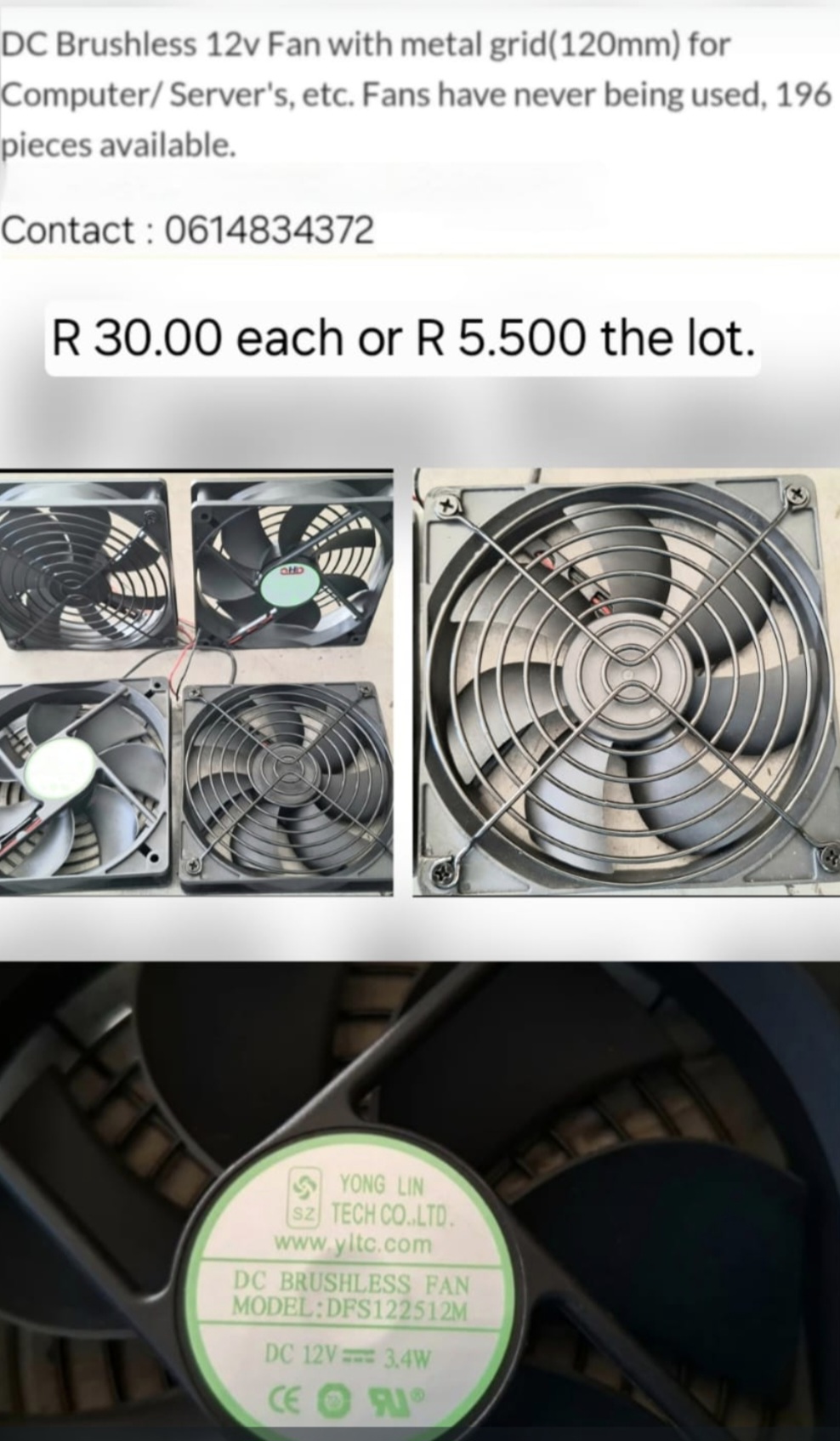 DC Brushless fan with metal grid(120mm). For computer's/ Server's etc. Fan's have never being used, 196 pieces available.