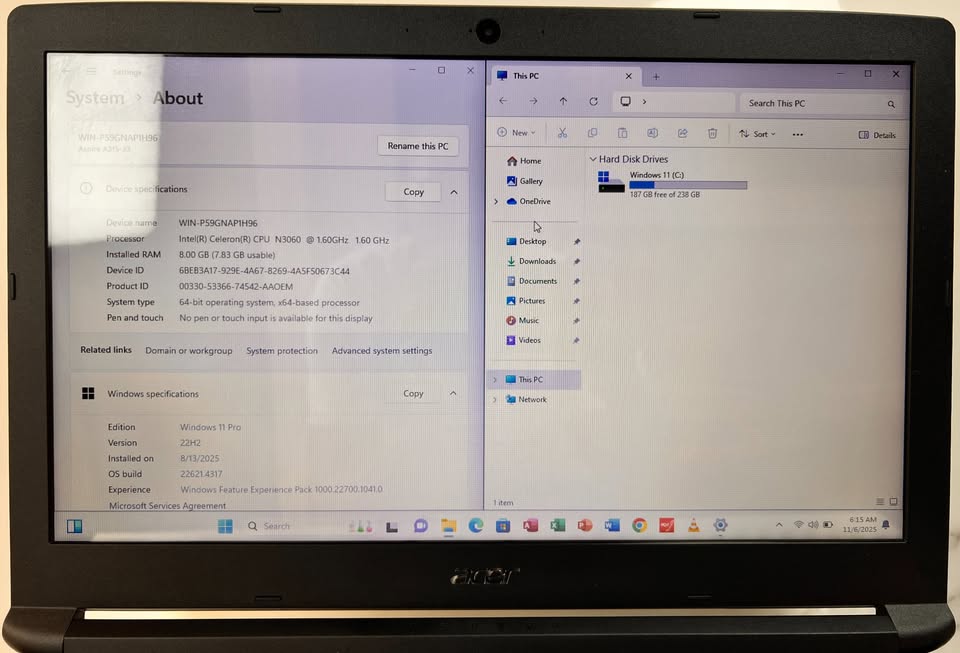 256GB Solid State Drive 👌🏾 8GB DDR3 RAM Intel™ Celeron(R) N3060 Processor 1.60GHz Processing Speed SD Card Slot 3 USB Ports HDMI Video Port Windows 11 Pro O.S QWERTY Keyboard Mic & Stereo 3.5mm Port 15.6inch Display Screen Excellent Condition Excellent Battery > Charger Included >> 90 Days Guarantee ☎️ WhatsApp 📲 📍207 Seventh Avenue, Florida Road Durban, 4001