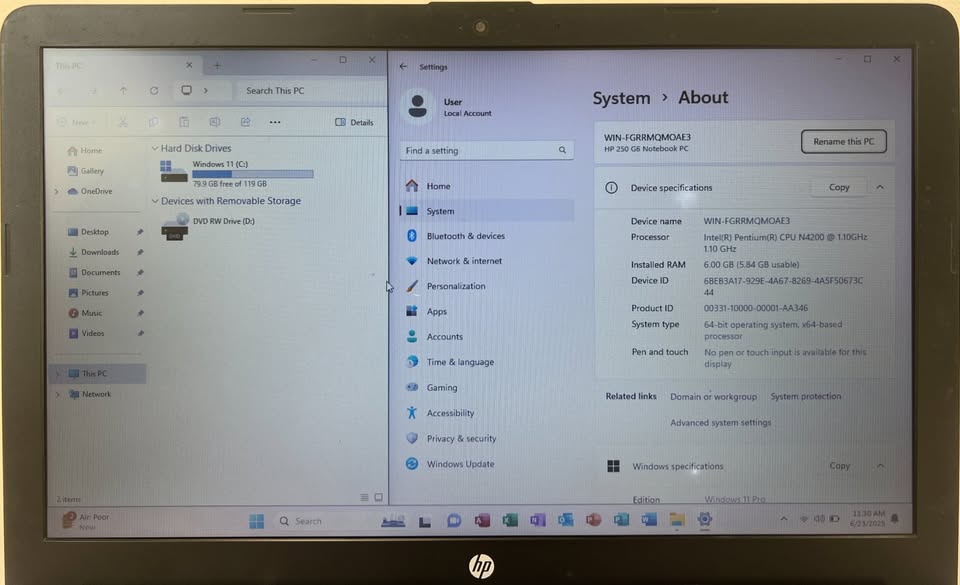 128GB Solid State Drive 👌🏾 6GB DDR3 RAM Intel™ Pentium Processor N4200 1.10GHz Processing Speed SD Card Slot 3 USB Ports Windows 11 O.S CD & DVD ROM HDMI & VGA Video QWERTY Keyboard Mic & Stereo 3.5mm Port 15.6inch Display Screen Excellent Condition Brand New Battery > Charger Included >> 90 Days Guarantee ☎️ WhatsApp [hidden information] 📲 [hidden information] 📍207 Seventh Avenue, Florida Road Durban, 4001