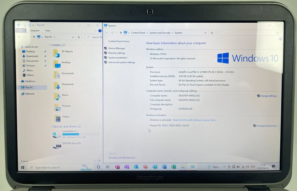 256GB Solid State Drive 👌🏾 4GB DDR3 RAM Intel™ Core™ i5 Processor 3210M 2.50GHz Processing Speed SD Card Slot 4 USB3 Ports Windows 11 O.S DVD & CD ROM QWERTY Keyboard HDMI & VGA Video Mic & Stereo 3.5mm Port 15.6inch Display Screen Excellent Condition Great Battery > Charger Included >> 90 Days Guarantee ☎️ WhatsApp 📲 📍207 Seventh Avenue, Florida Road Durban, 4001