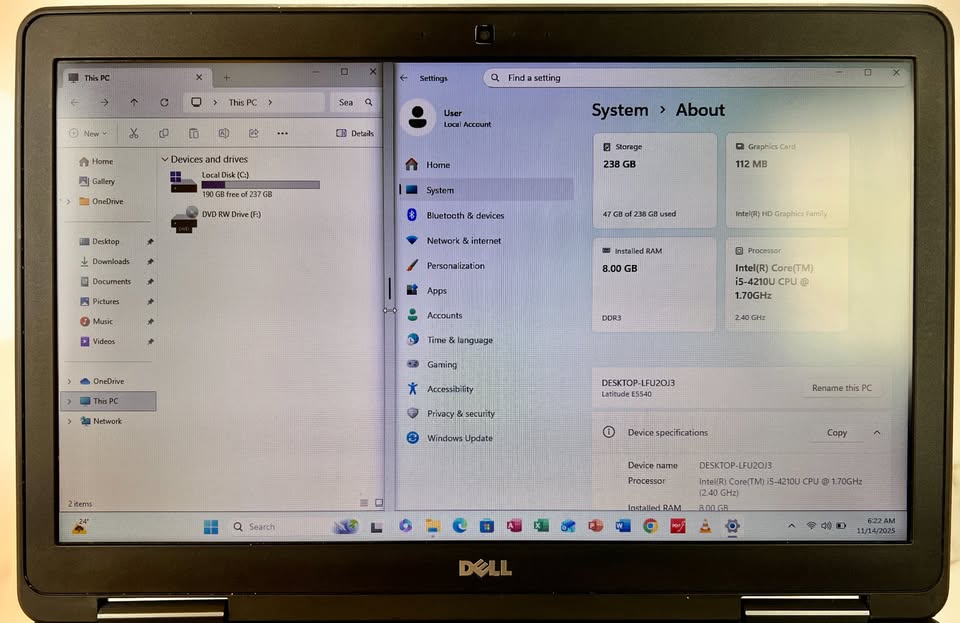256GB SSD 👌🏾 8GB DDR3 RAM Intel™ Core™ i5 Processor 4210U 2.40GHz Processing Speed SD Card Slot 2 USB Ports DVD ROM Windows 11 Pro O.S HDMI & VGA Video QWERTY Keyboard Mic & Stereo 3.5mm Port 14inch Display Screen Excellent Condition Great Battery > Charger Included >> 90 Days Guarantee ☎️ WhatsApp 📲 📍207 Seventh Avenue, Florida Road Durban, 4001