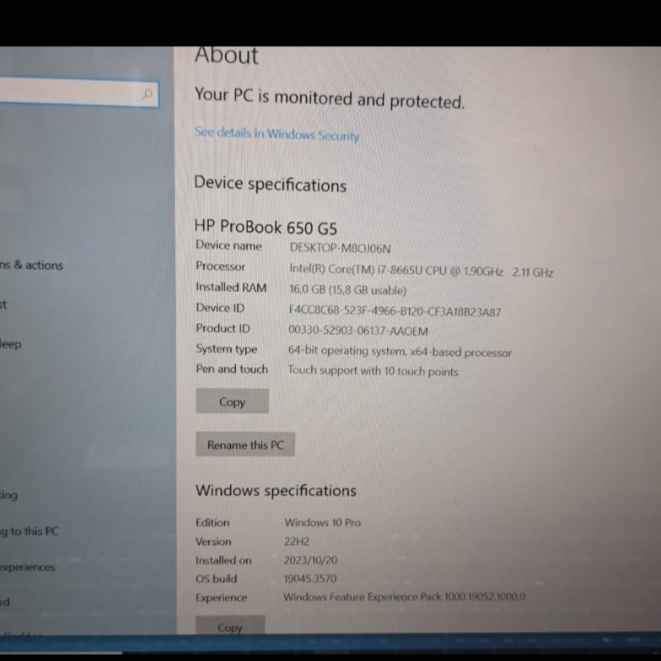 HP Probook 650 G5 - i7 processor - 15.6" Notebook - 1920 x 1080 - Core i7 i7-8665U - 16 GB RAM - 16 GB Optane Memory - 512 GB SSD - Windows 10 Pro 64-bit - Intel UHD Graphics 620 - in-Plane Switching (IPS) Techno - touch screen Product code - SH23 💵 Price - R7,999 ✅ Condition - Good ☎️ 0️⃣6️⃣4️⃣ 5️⃣1️⃣0️⃣ 9️⃣9️⃣0️⃣3️⃣ 🚚 Item can be collected from Bluff 🌐 Based in and around Durban *Please like and follow our page to stay informed on our daily deals* *Also ask us how we can easily assist you with selling your items*