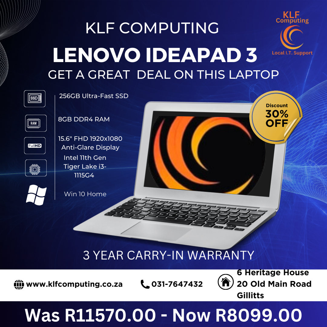 Lenovo Idea Pad3 laptop special - Stock limited.