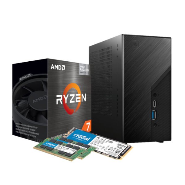 SPECIFICATIONS: Operating System: Microsoft Windows 11 Home AMD Ryzen 7 5700G 8-Core 4.6 GHz AM4 CPU Cores: 8 Cores Base Clock Speed: 3.8GHz Boost Clock Speed: 4.6GHz GPU Cores: 8 Socket: AM4 16GB DDR4 3200MHz SO-DIMM Memory Capacity: 16GB Data Transfer Rate: 3200MHz Generation: DDR4 Gen3 500GB NVMe SSD Capacity: 500GB Asrock DeskMini X300 Barebone Mini-ITX PC Chipset: AMD X300 Form Factor: Mini-ITX Graphics Output: HDMI(4K @60Hz) DisplayPort, D-Sub Audio: 1 x Head Phone with MIC Jack, 1 x MIC-In (RealtekALC233) USB Ports: 1 x USB 3.2 Gen1 Type-C, 2 x USB 3.2 Gen1 Type-A, 1 x USB 2.0 Type-A LAN: Gigabit LAN (RealtekRTL8111H) WLAN: 1 x M.2 (key E 2230) Slot for Wi-Fi + BT Module Dimensions: 15.5 x 15.5 x 8 cm