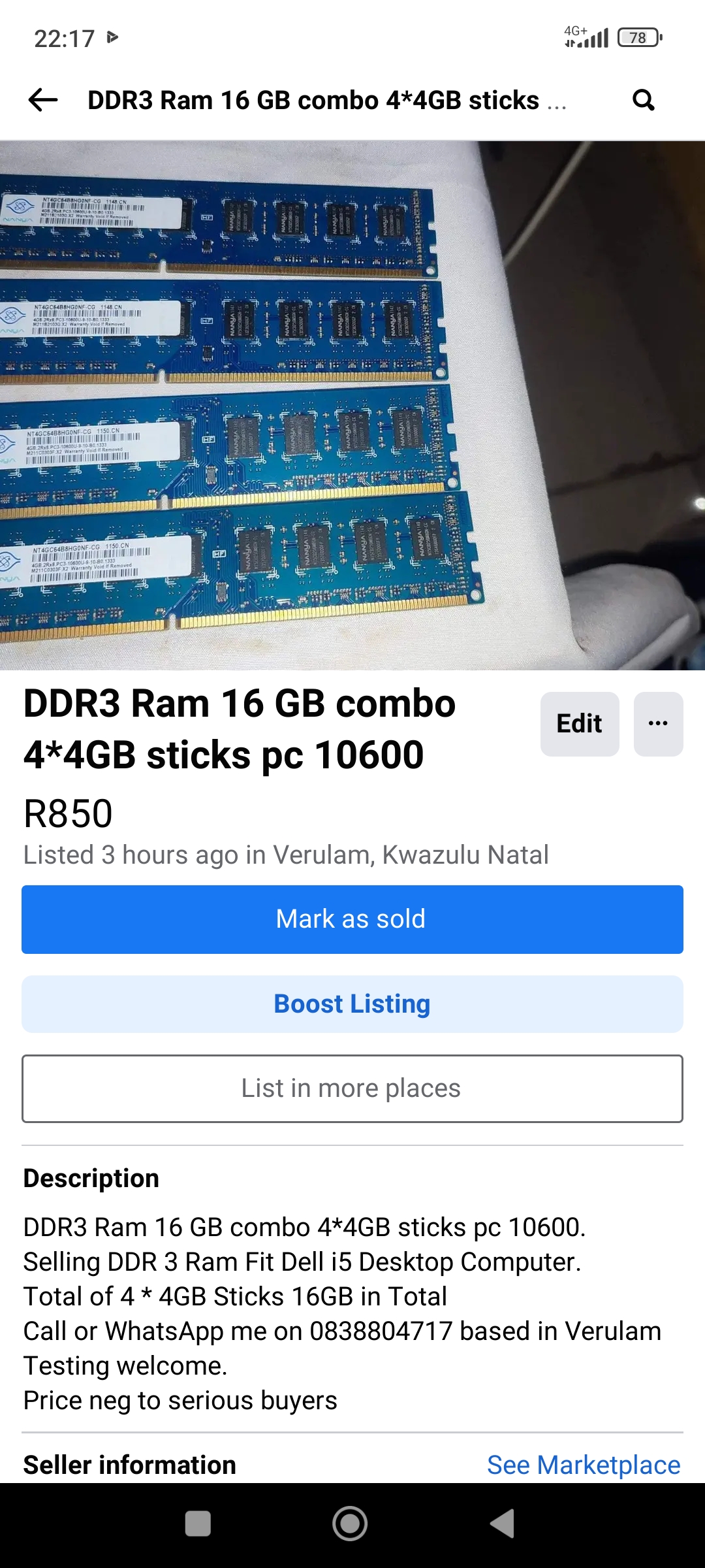 Selling DDR 3 Ram Fit Dell i5 Desktop Computer.